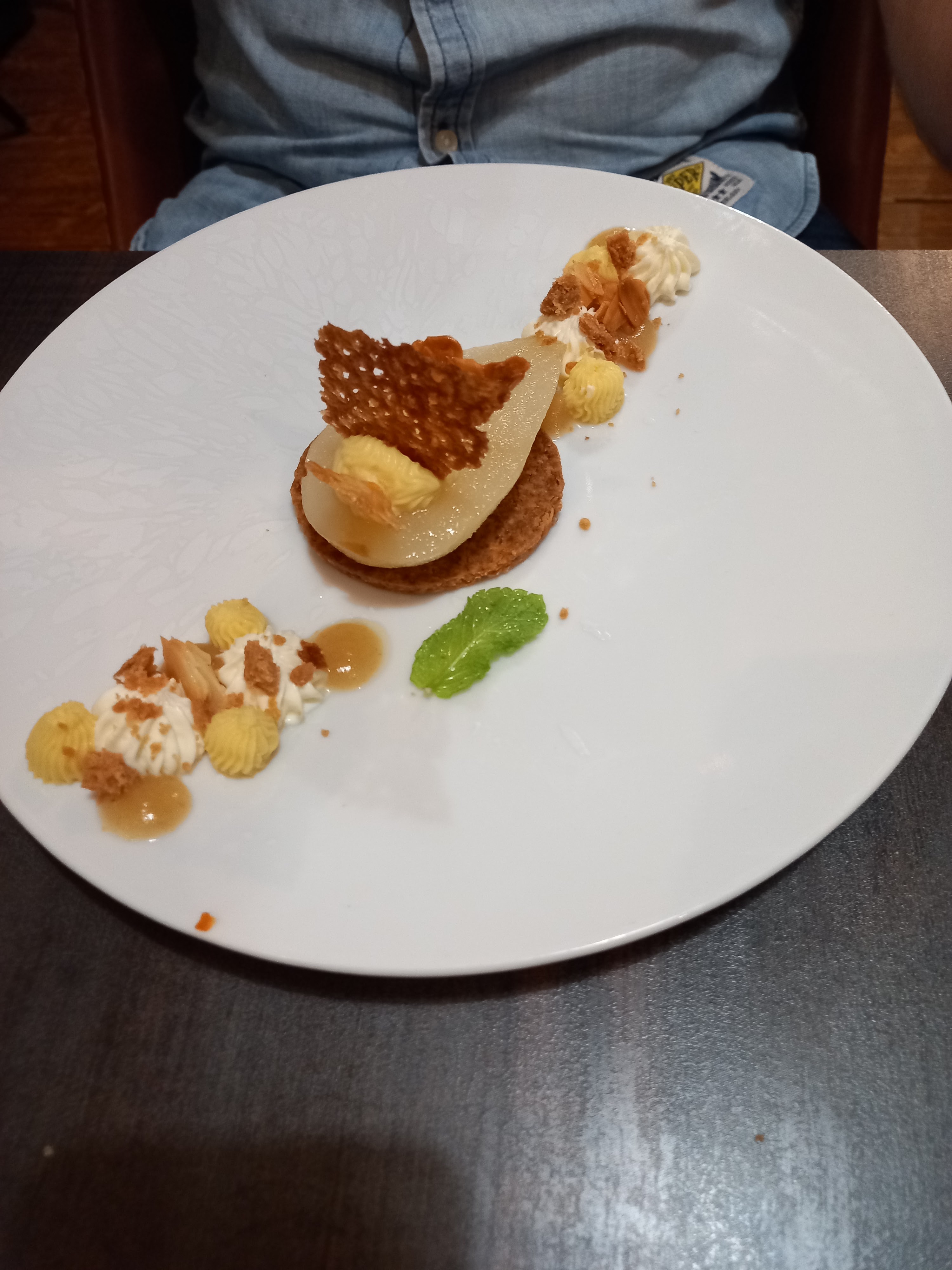 Bravo pour votre travail ! Service impeccable, mené de main de maître, en 2 couverts svp... La cuisine magnifique, juste... quel gout et quel travail ! Ps : Moii qui suis pas desserts, bravo à l apprentit pour sa tartelette pomme 🍎