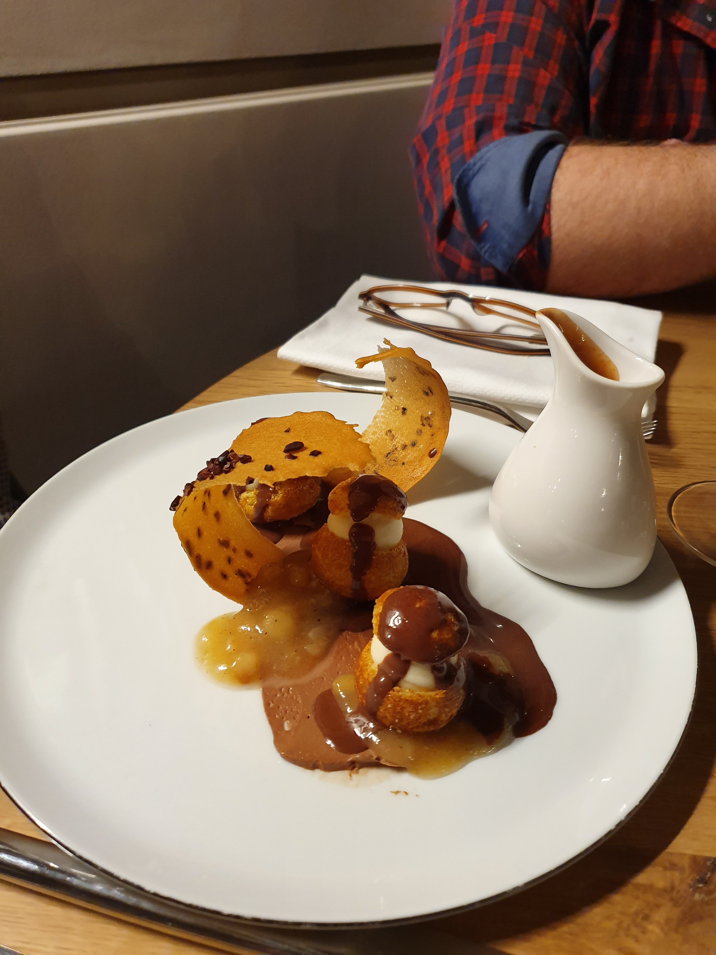 Repas excellent, que ce soit les amuse bouche ou les plats. Le pressé de cochon était succulent et fondant dans la bouche. La quenelle de brochet était très bonne également avec un vrai goût de poisson. Un bémol pour le verre mal lavé avec des traces bien visibles et le couteau à beurre essuyé mais avec des fibres de coton sur le couteau