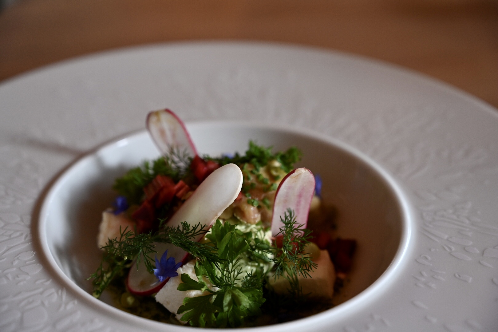Cuisine créative, assiettes joliment dressées, équipe de service jeune, compétente et très sympathique