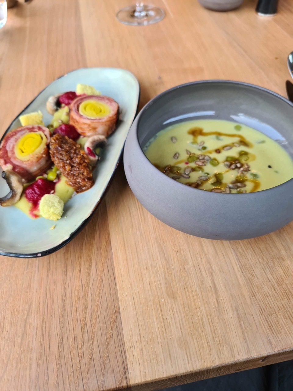 Bon on a craqué pour les menus dégustation et on a pas regretté. Tres bel endroit, personnel très agréable et surtout qu’est ce que c’est bon. Un restaurant qui respecte les saisons pour commencer, des produits frais, bien cuisinés, bien assaisonnés. Des beaux accords avec des cuissons justes et des textures agréables en bouche. Nous avons apprécié que ce soit des saveurs simples mais sublimées. De plus malgré des restrictions alimentaires indiquées au dernier moment le chef a bien su s’adapter. Gros coup de coeur dommage qu’on ne soit pas du coin!