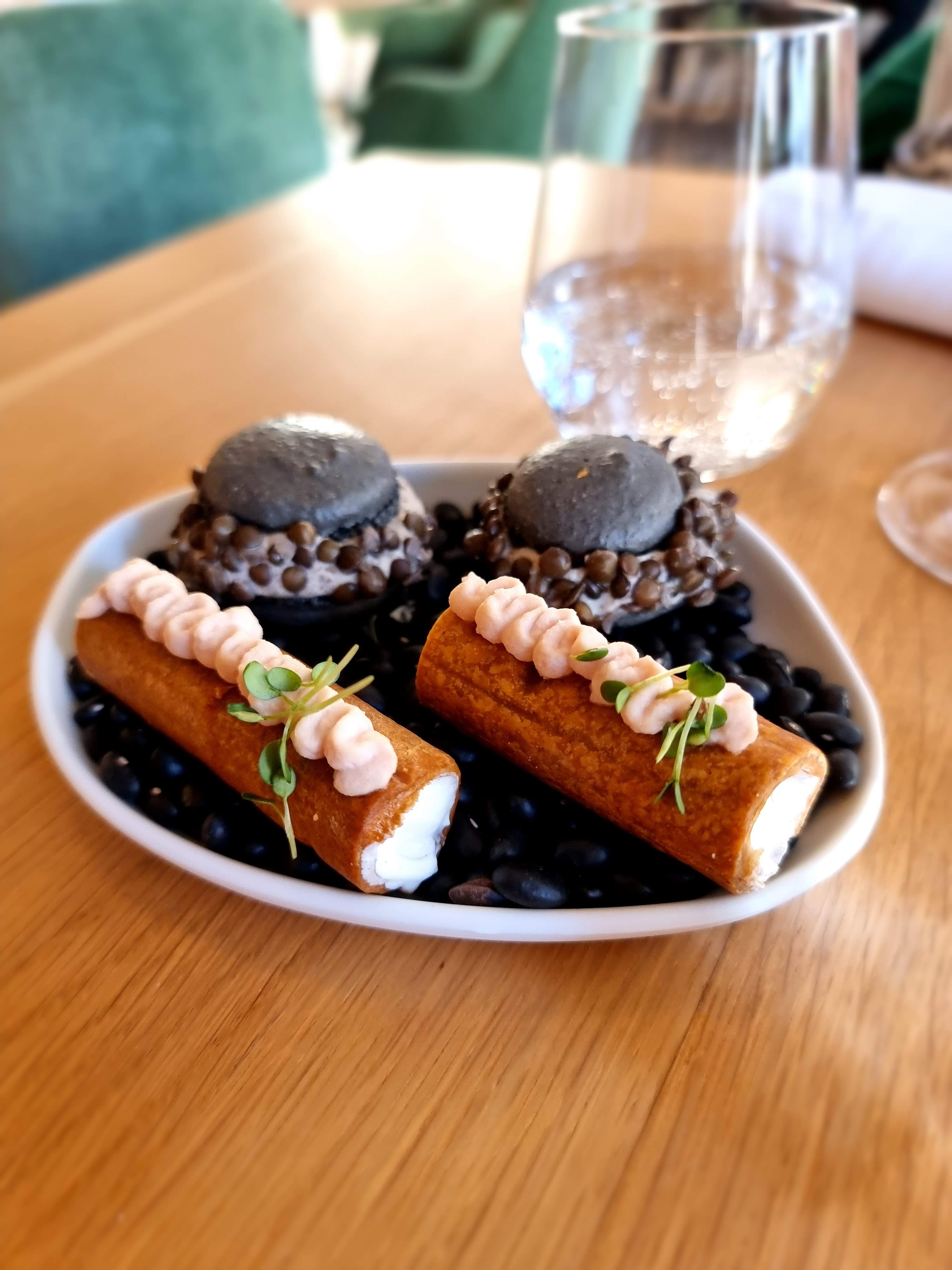 De bonnes découvertes mais manque de constance dans le goût. De belles trouvailles comme le beurre noisette. Le pois cassé était très intéressant avec le roulé au lard fumé. L'entrée à la betterave était aussi bien cherchée et réalisée. Très bon dessert au chocolat également (un vrai plaisir!). Toutefois, les plats de substitution en cas d'intolérance sont très décevants. Par exemple, le macaron à la lentille avait une coque trop sèche et trop sucrée et l'alliance des saveurs avec la crème de lentille ne fonctionnait pas. Quant à la pièce de bœuf qui remplace le cochon, elle était quelconque. Le poisson, quoique bien cuit, ne nous a pas non plus transporté. Pour un ancien élève de Pierre Gagnaire c'est un peu dommage. Au final, chaque élément est bien exécuté mais le mélange des saveurs n'opère pas.