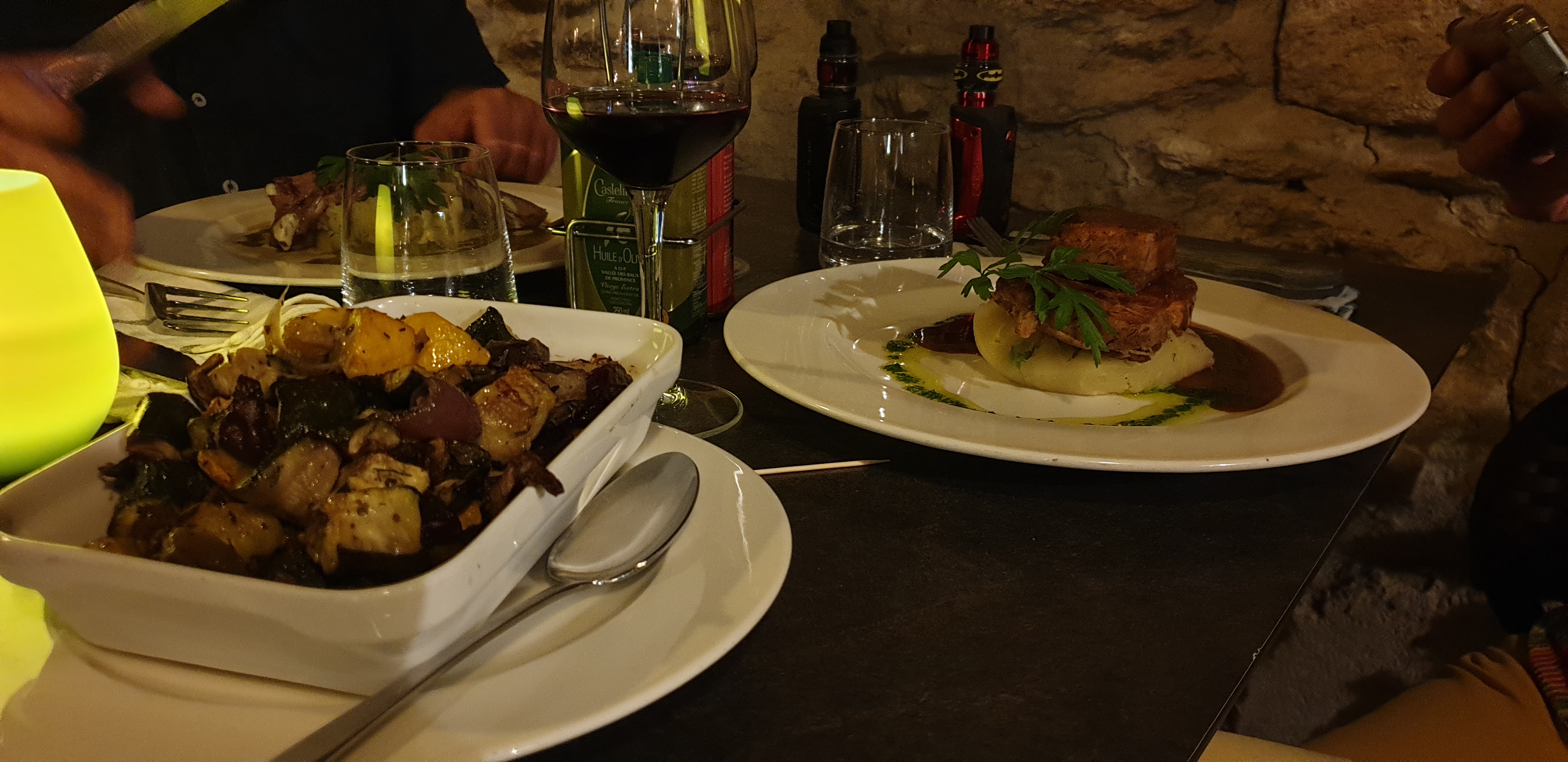 Un très bon moment des mets de qualité du personnel fort agréable Un bémol avec l apéritif kir royal coupes champagne 5 personnes pas d accompagnement....dommage dans la vallée des oliviers.....! Proposition de tapas ....payant. .. Mais avons passé un bon moment.