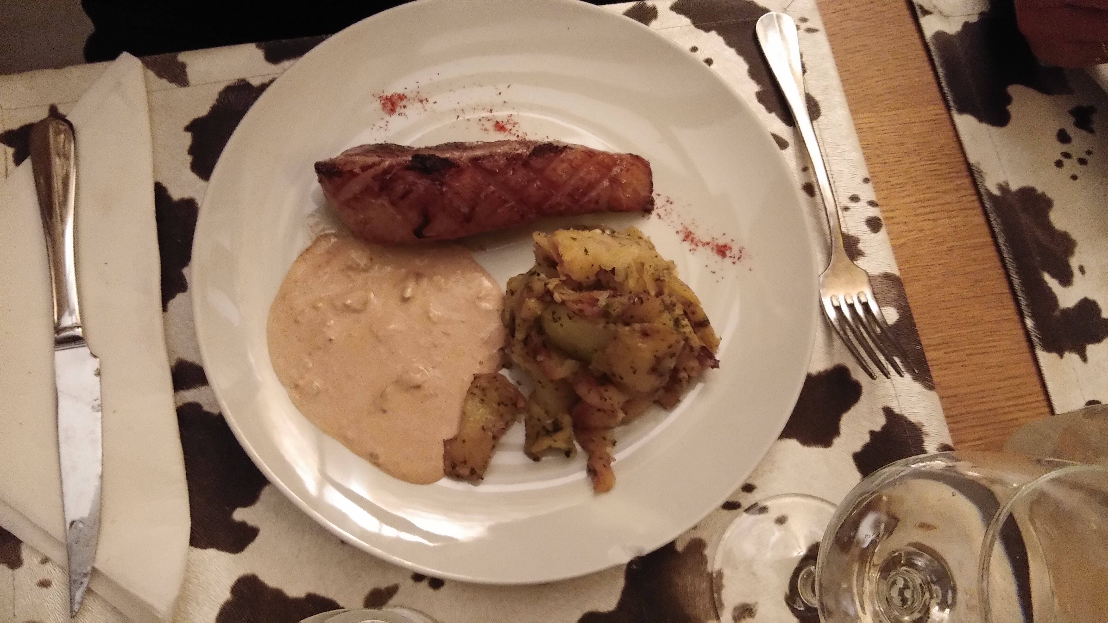 Plat délicieux mais un peu faible . Serveurs agréables et gentils . Superbe ambiance malgré notre présence nombreuse.