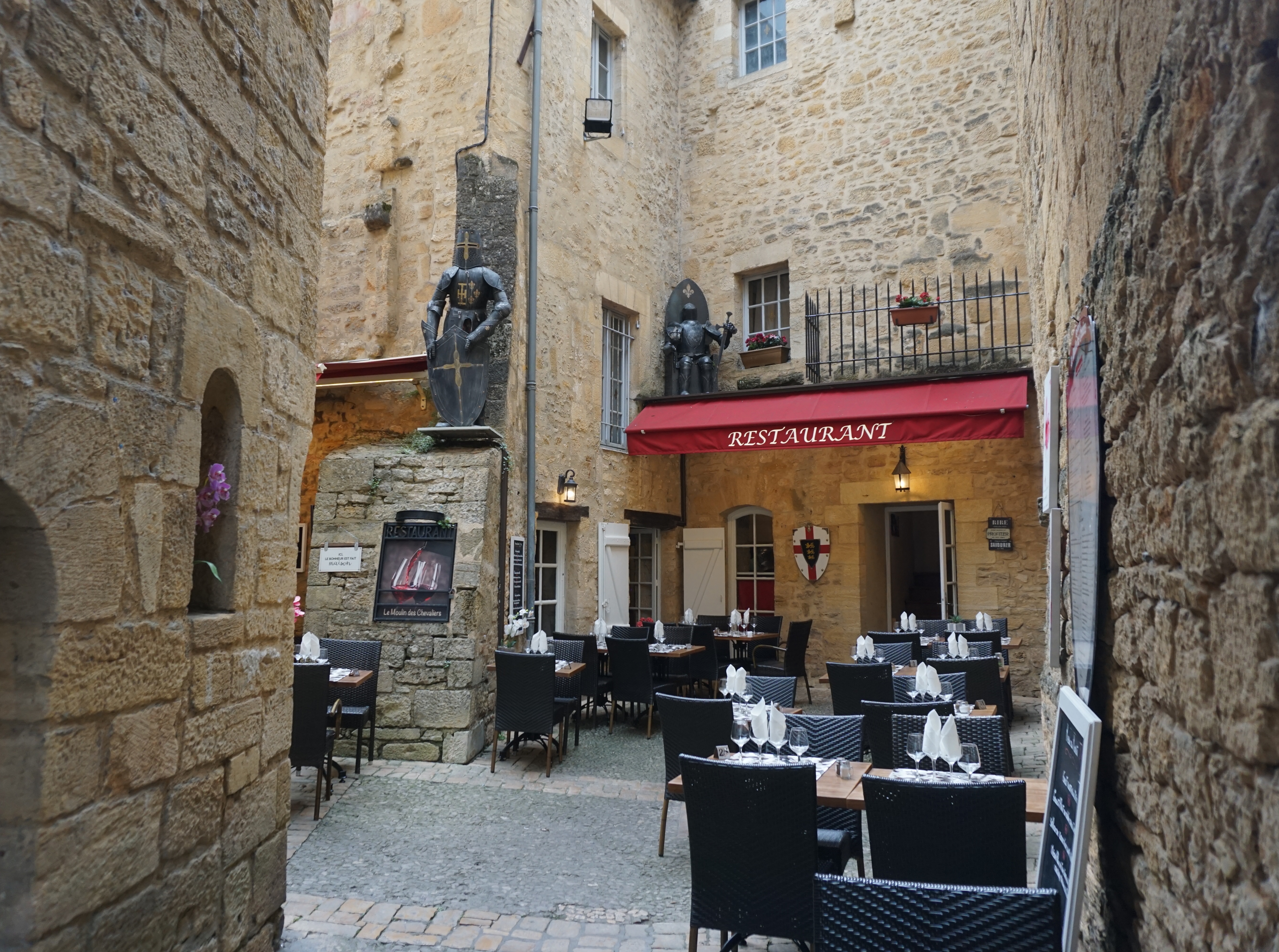 Joli restaurant avec terrasse en plein centre-ville de Sarlat. Le Moulin des Chevaliers propose une cuisine traditionnelle à la fois raffinée et savoureuse à base de produits frais. Belle sélection de vins. Le personnel est agréable et sympathique. Je vous recommande vivement. #restaurant #sarlatlescaneda