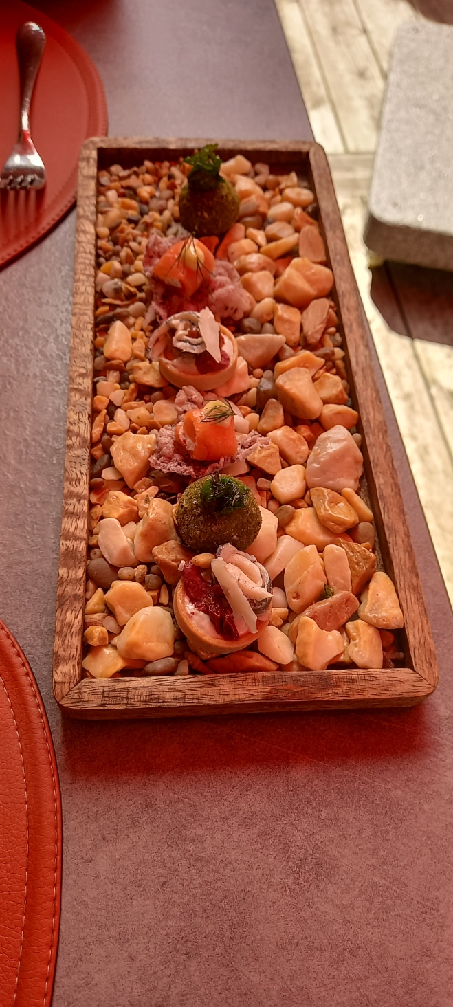 Menu découverte en 5 plats. Une très belle expérience de ne pas savoir ce que l'on mange. J'ai adoré😋😋❤️ à refaire. Merci pour votre service