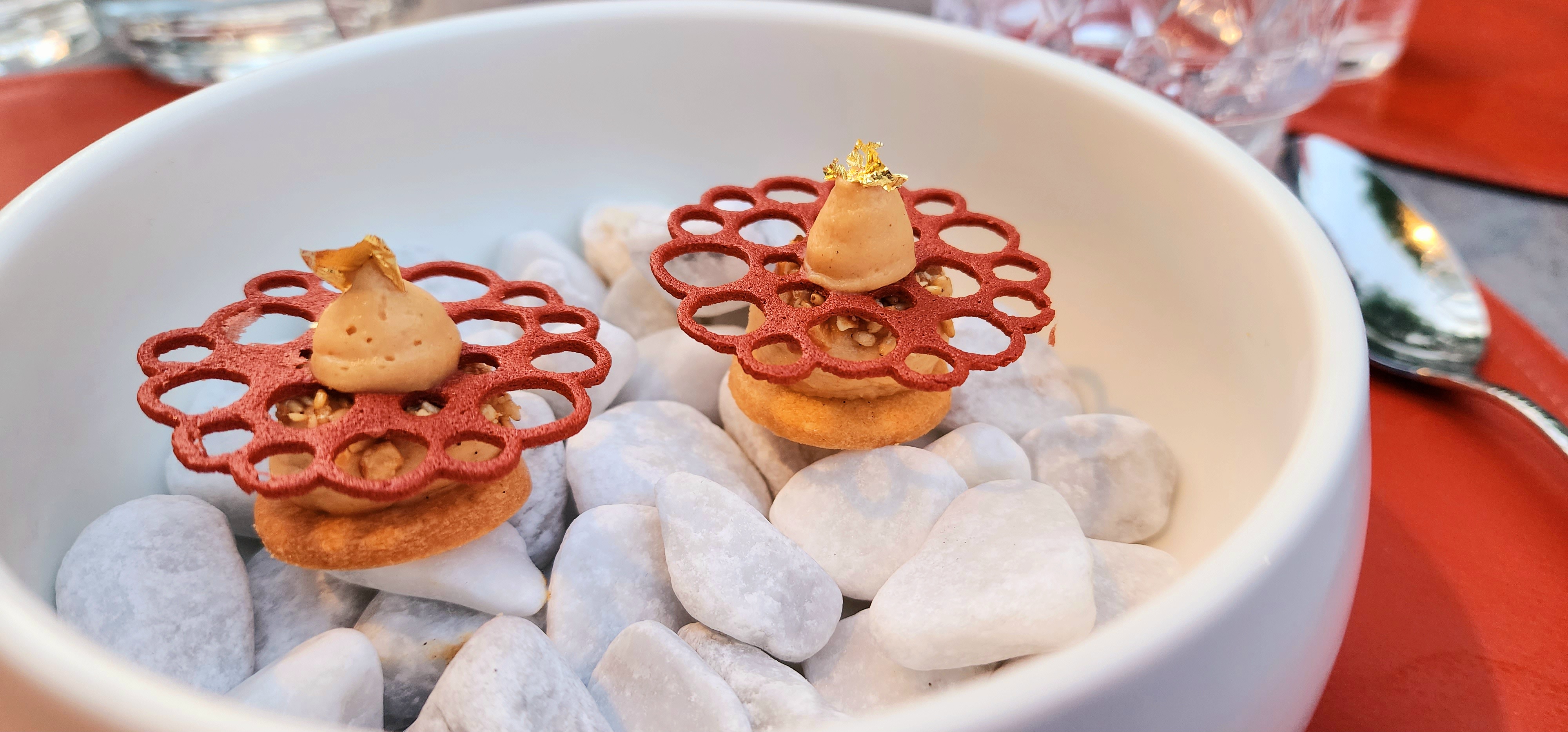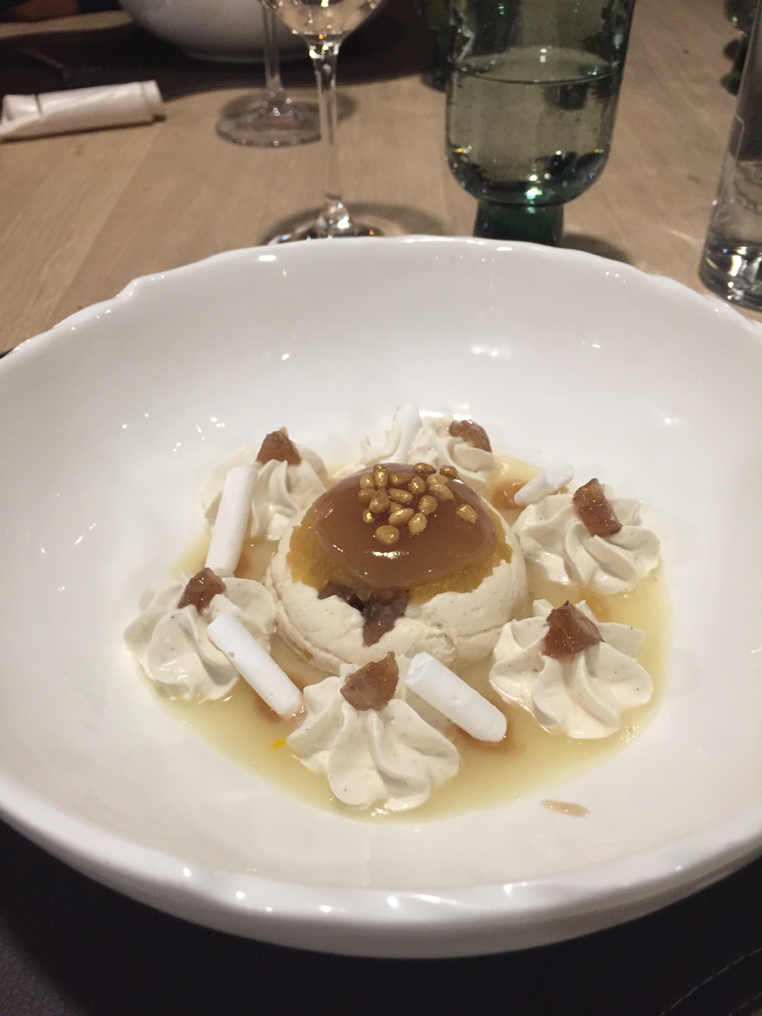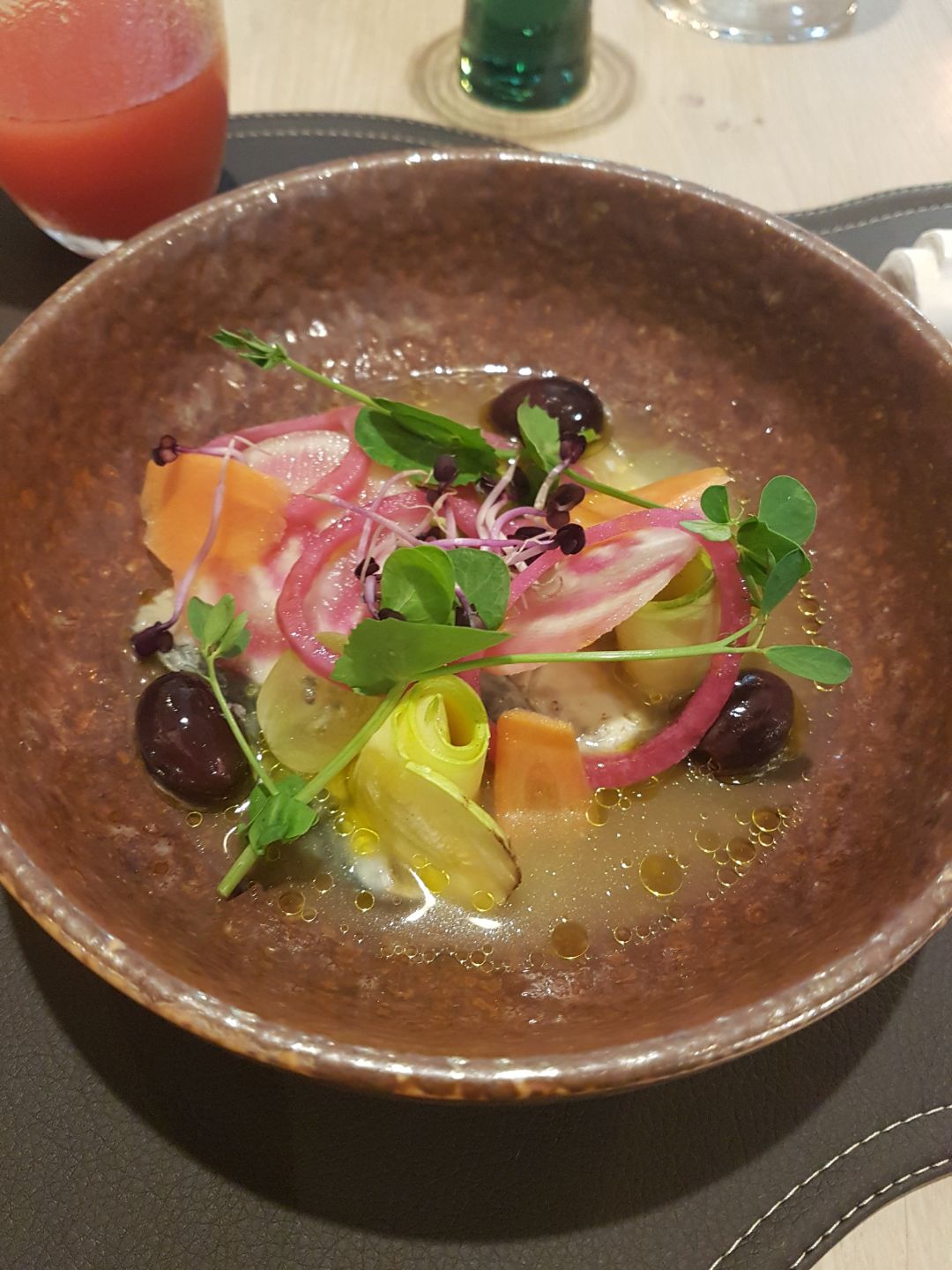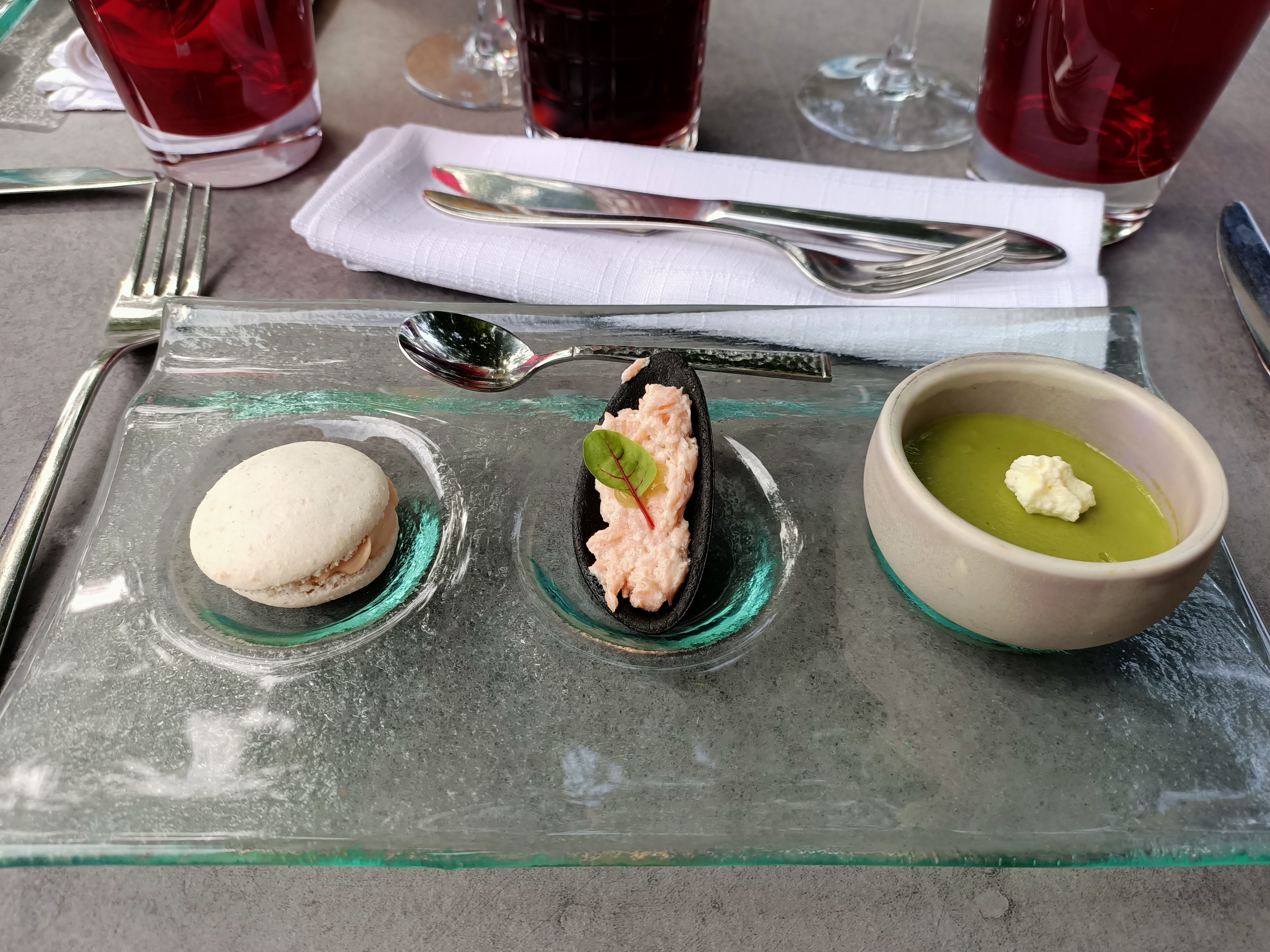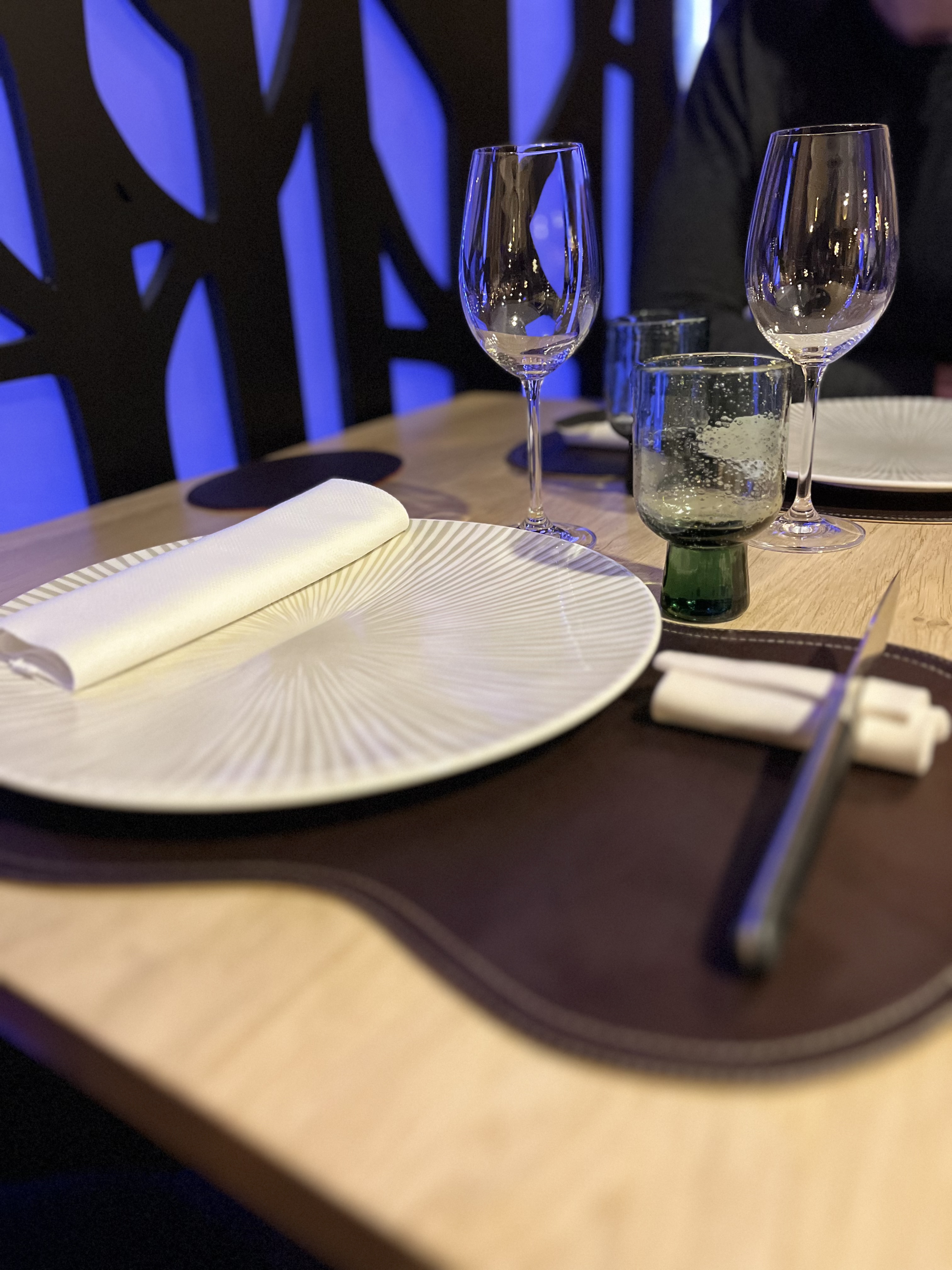 Le lieu est une étape intéressante mais le menu dégustation, format auquel nous sommes habitués, nous a déçus compte tenu de son prix. Les goûts et les textures se répètent sans véritable cohérence, ponctués de quelques audaces culinaires maladroites (cancoillotte aux poires dans un verre à martini par exemple). Par ailleurs, l'amuse-bouche est compté comme un des 7 plats, il n'y a aucune mignardise en fin de repas et surtout : l'eau du robinet est payante (un scandale en France).