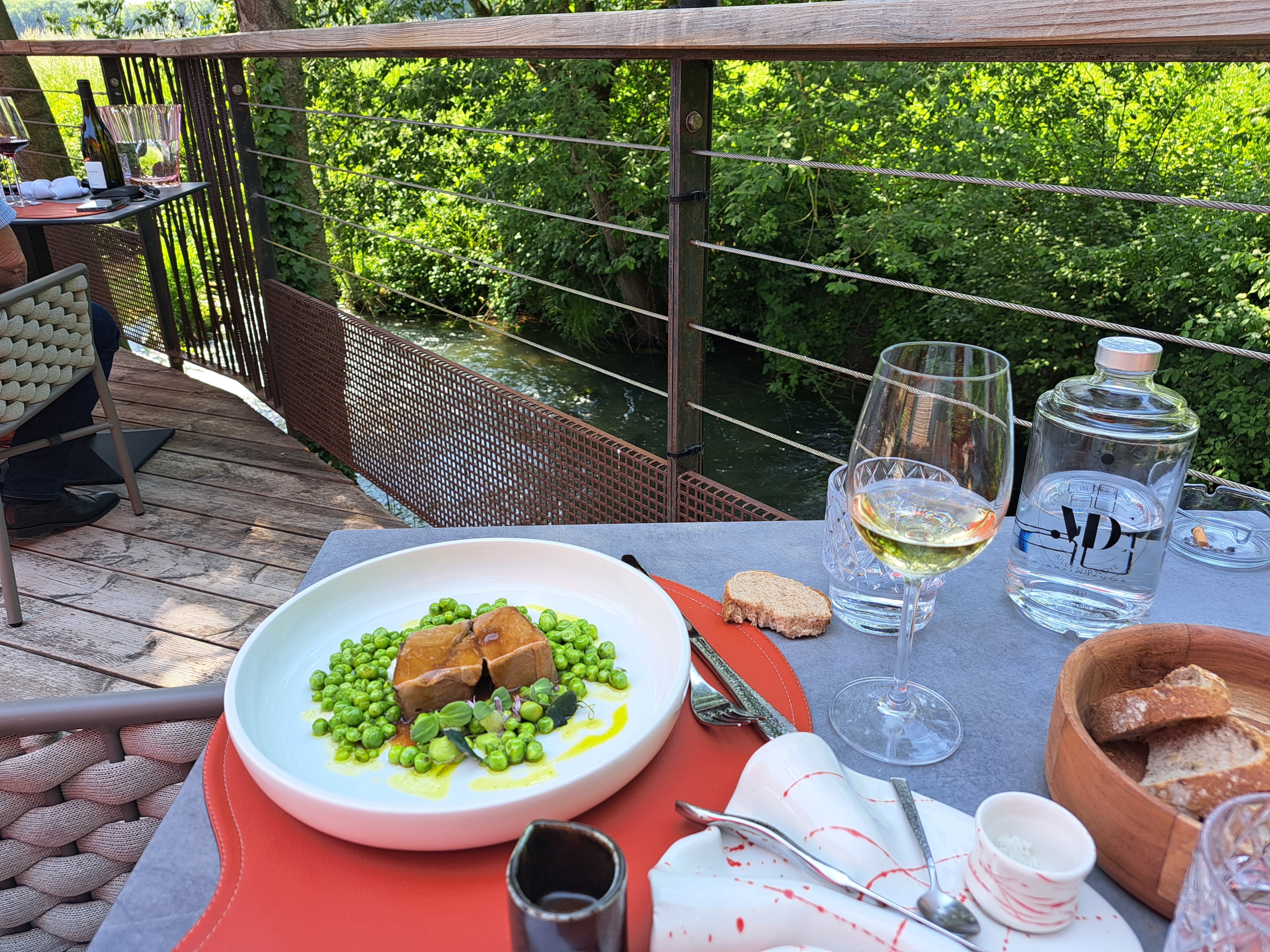 Lieu magnifique et fleuri, assis à votre table au bord de la rivière sur une terrasse, vous passerez un agréable moment, le personnel sympathique et professionnel et au petit soin pour vous. Les plats arrivent leurs dressage vous donnent envie de profiter du moment, Le poisson est cuit à point, les légumes du moment sont croquants, le dessert est surprenant même « le trou normand « est surprenant, une glace au mojito. Faites confiance au chef et à son équipe avec leur menu découverte, l’équipe vous demandera vos allergies et les mets que vous n’appréciez pas et laisser le chef choisir votre voyage gustatif. Merci pour ce moment et à bientôt.