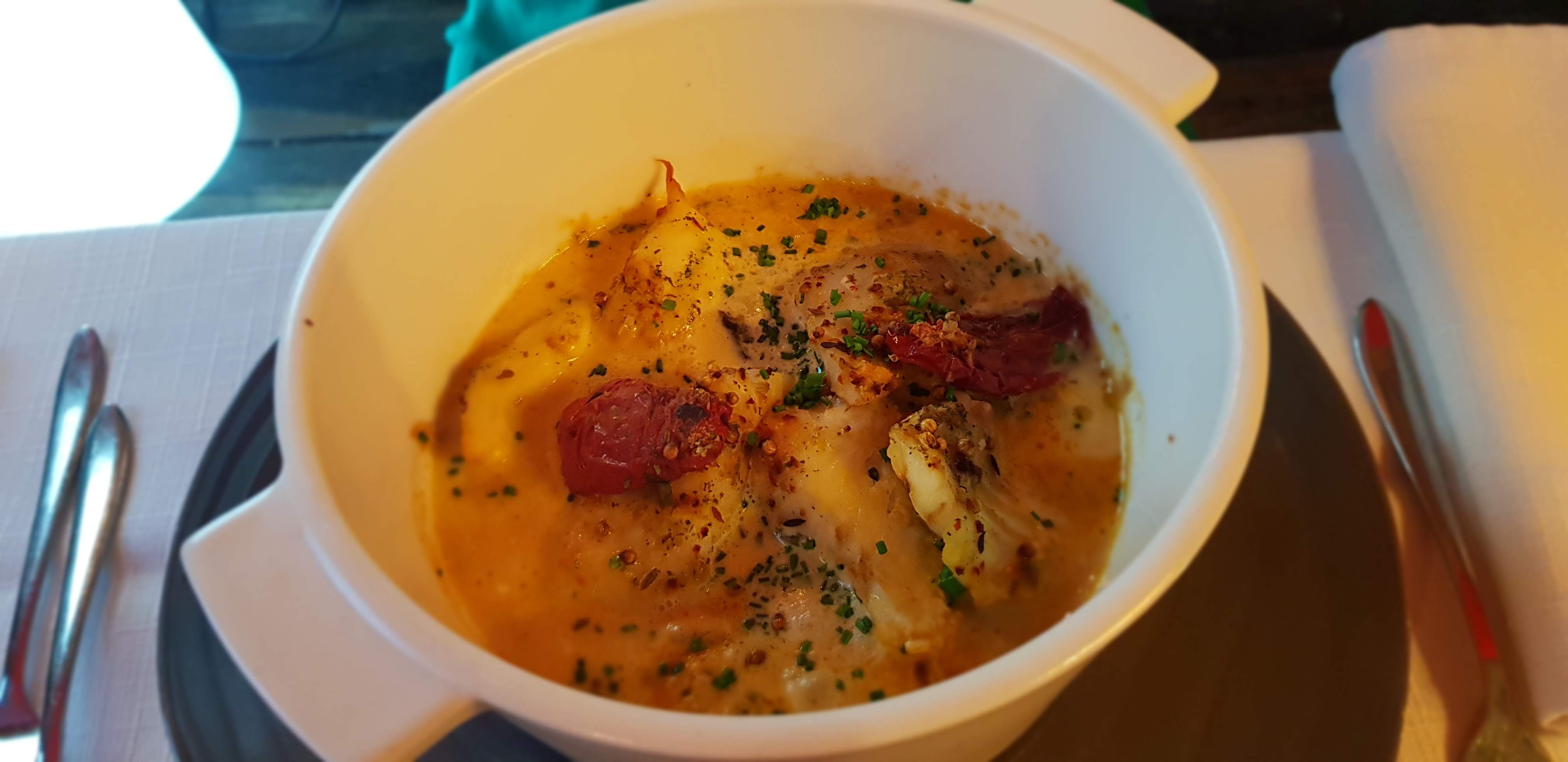 C'est un très joli restaurant au milieu de nulle part. Très cher pour ce qu'ils ont à offrir. Le service est très bon. Je n'aime pas trop les sauces blanches ni beaucoup de beurre, en petites portions. Non, pour moi, la bonne nourriture, c'est des ingrédients de qualité et bien préparés, ça ne m'impressionne pas quand ils coupent une humble pomme de terre pour en faire un cube, non, ça m'impressionne quand c'est frais et savoureux.
