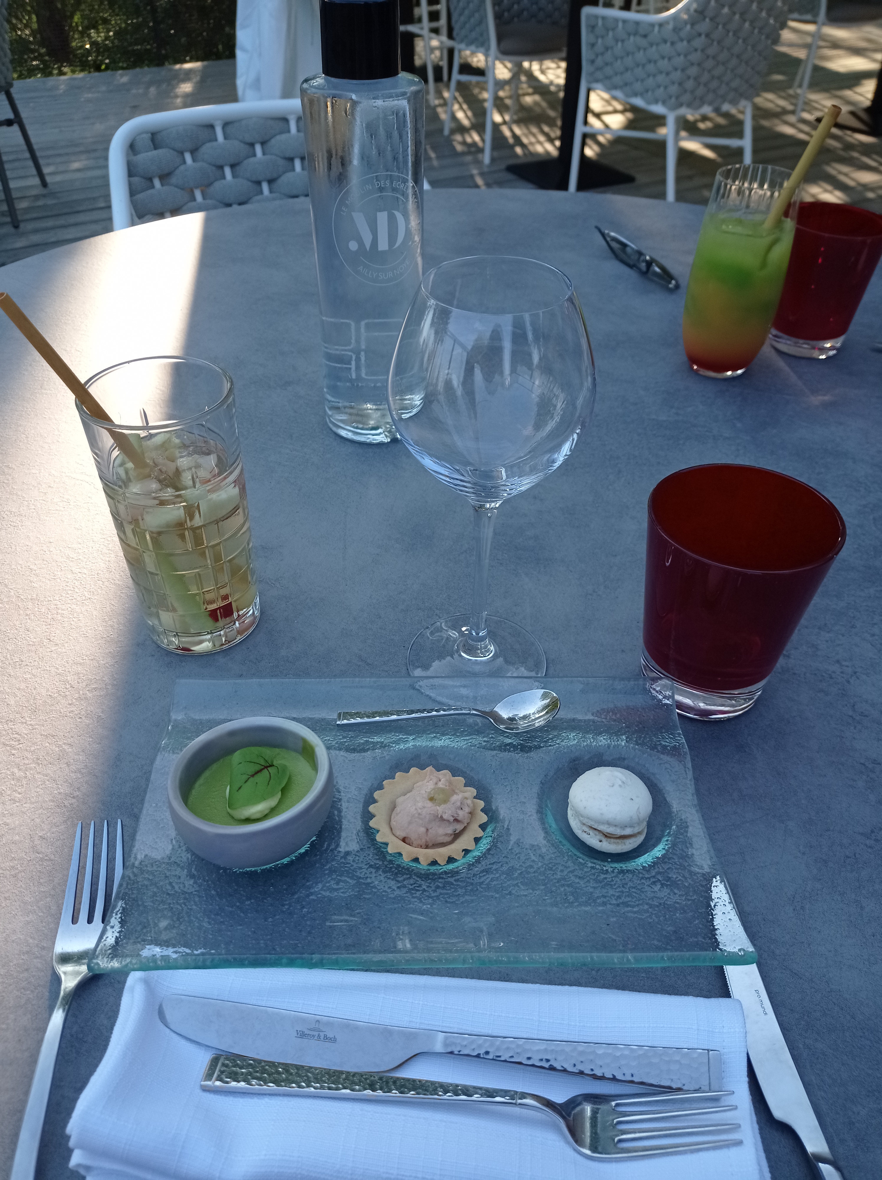 Tout avait bien commencé. Accueil excellent, service parfait cocktails magnifiques mise en bouche excellentes. Malheureusement lorsque nous avons souhaité avoir du beurre la réponse a été sèche et sans ménagement pas de beurre en août vous reviendrez en septembre nous avons à la place de l'huile. Pour les plats se sont de véritables tableaux dans l'assiette mais cela ne suffit pas pour apprécier le produit,il manque de quantité. Dommage ! La cuisson à basse température est aussi regrettable sur un filet de bœuf (que je souhaitais bleue et qui est arrivé à point) là aussi deux minuscules bouchées. Les desserts sont bons.