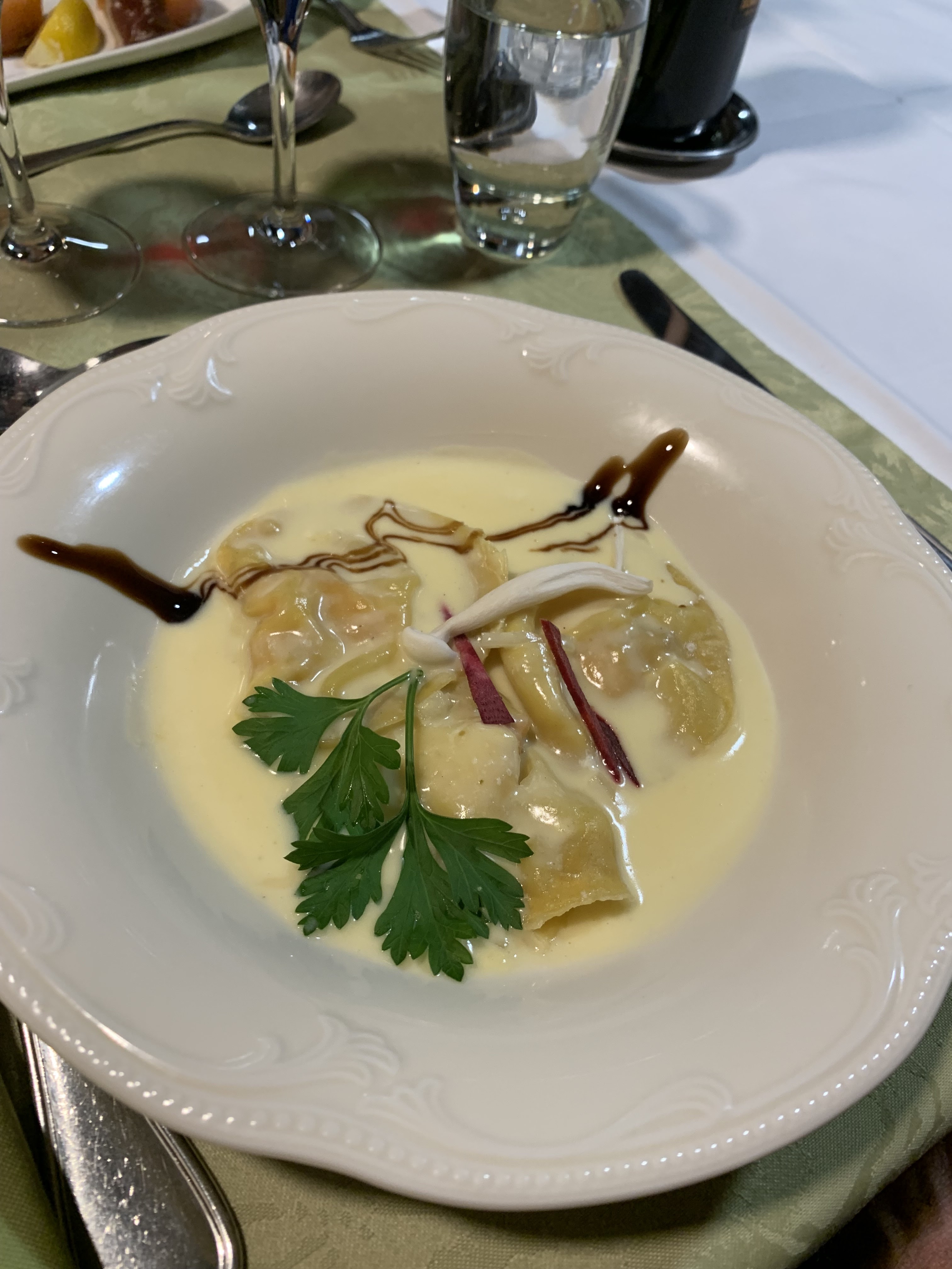 On avait oublié de noter notre réservation quand on est arrivé ce dimanche de Pâques, on n'avait pas de table réservée ,un petit temps de perplexité puis malgré tout on a été très bien accueilli et assez vite on a dressé une table pour nous ,nous étions 5 .le menu à 39 € était succulent les assiettes généreuses , le personnel : très bien. Dommage que ce soit un peu cher, le cadre ,malgré la pluie est très beau. Je recommande ce restaurant malgré le prix.