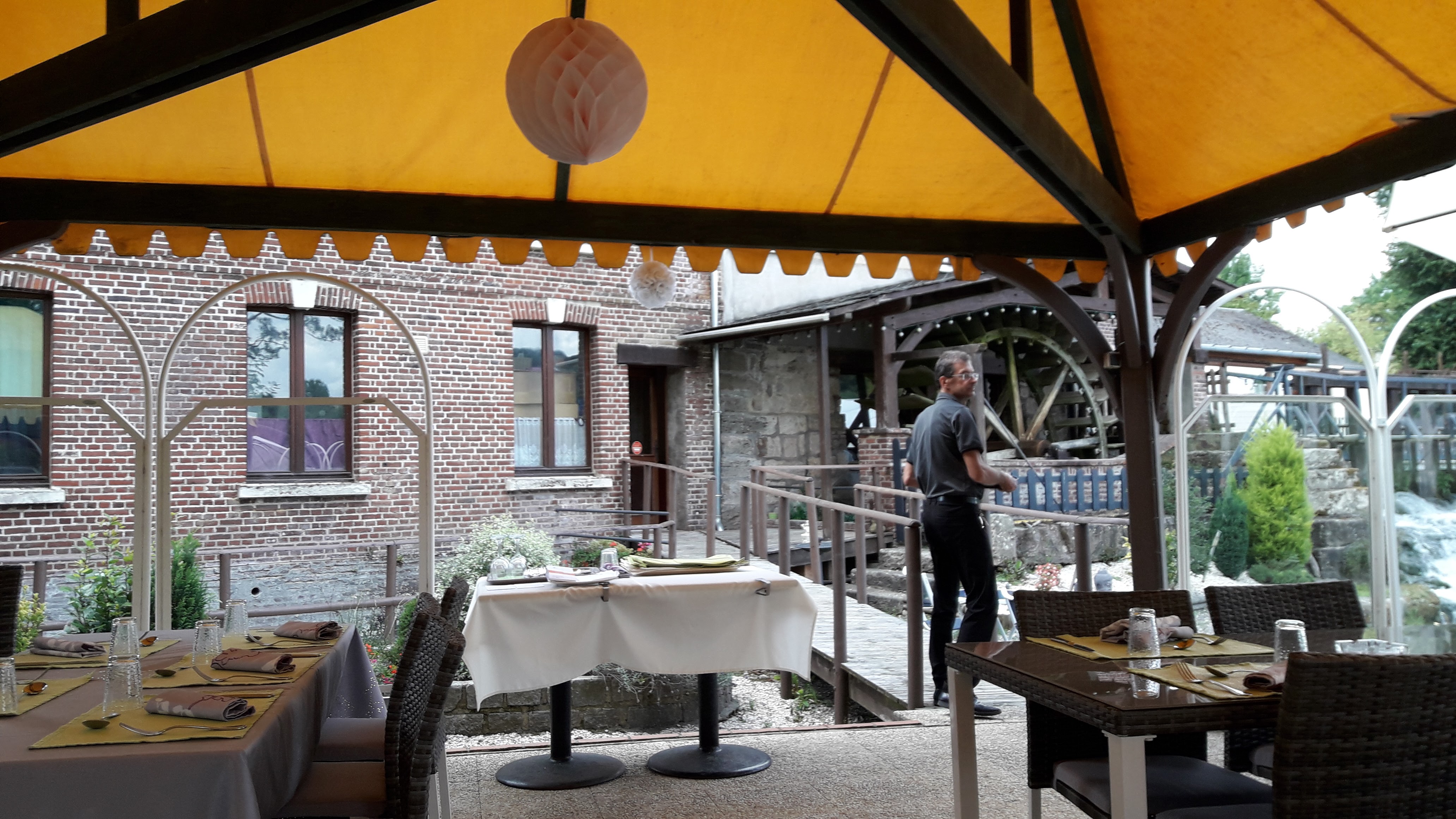 Nous sommes venus pour un baptême. Le cadre est magnifique avec la table vue sur la roue du moulin. L'équipe a très bien décoré la table pour le baptême. Un petit coin a été prévu pour mettre lit parapluie et que les enfants puissent jouer. Nous avons bien mangé avec un service correct. Bon moment