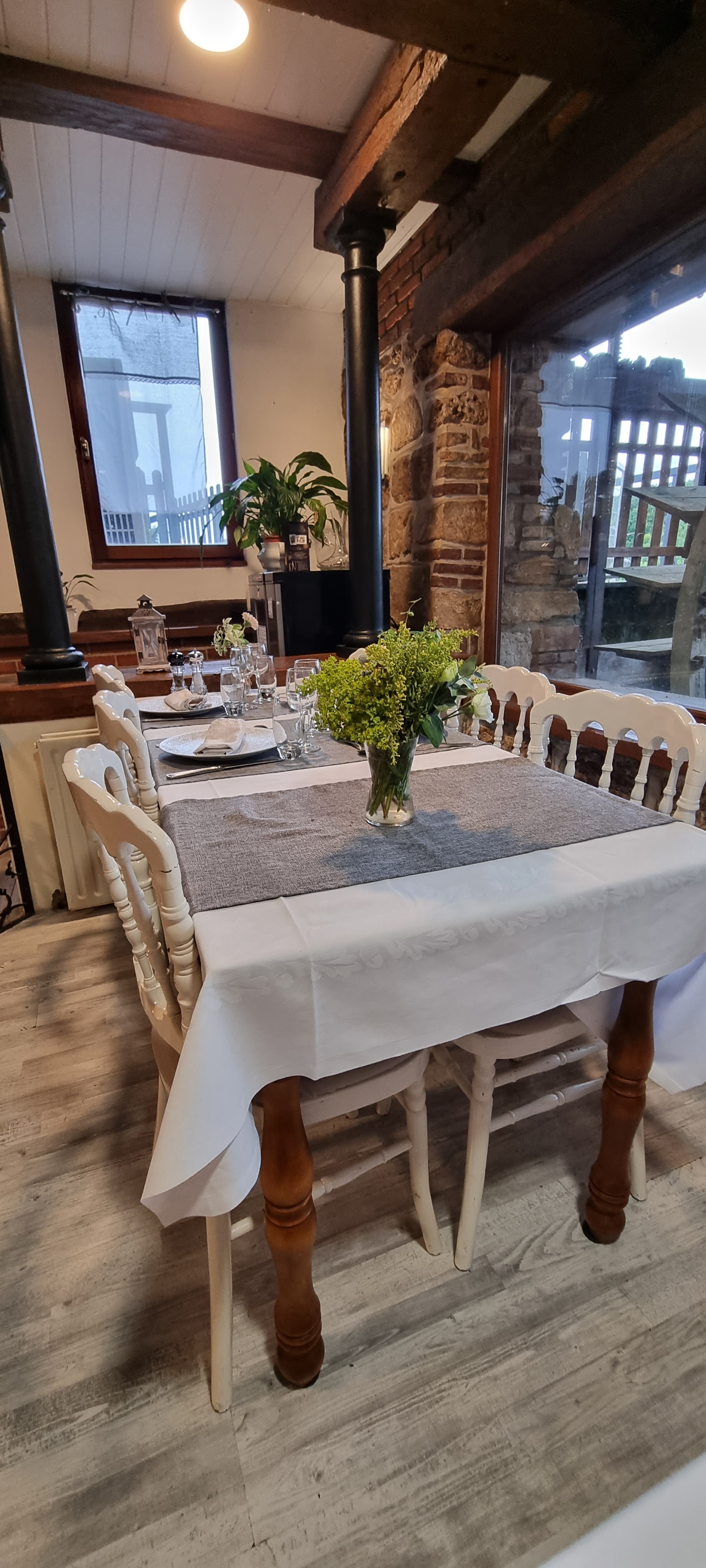 Bon moment passé en famille dans une salle de réception bien décorée et avec vu sur la campagne. Le cadre est magnifique et romantique. Pour le repas, c'était parfait de l'apéritif au café. Merci pour cette famille qui gère cet établissement et merci également pour le personnel. Très sympathique et à l'écoute de sa clientèle. Magnifique endroit et on n'y mange bien