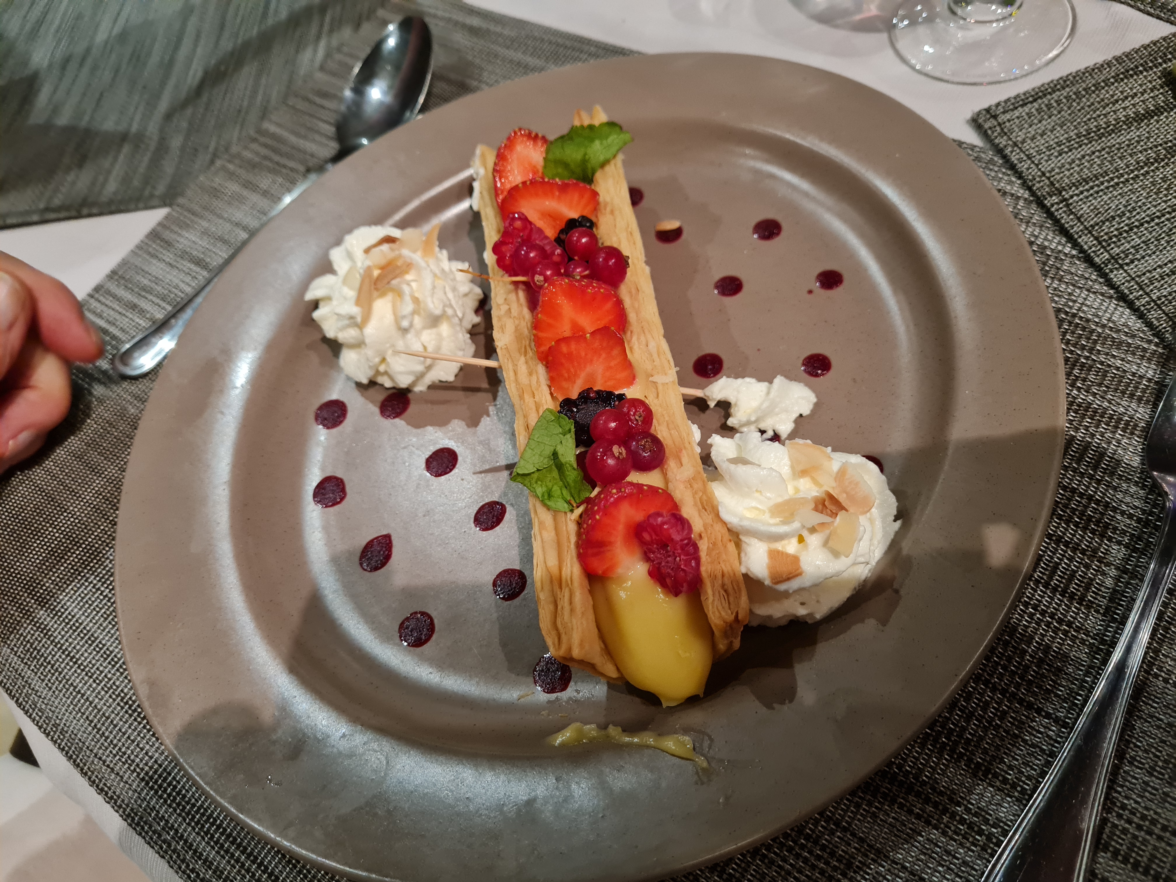 Très bien très raffiné et le dôme choco hummmm une tuerie !!!!!!!!!