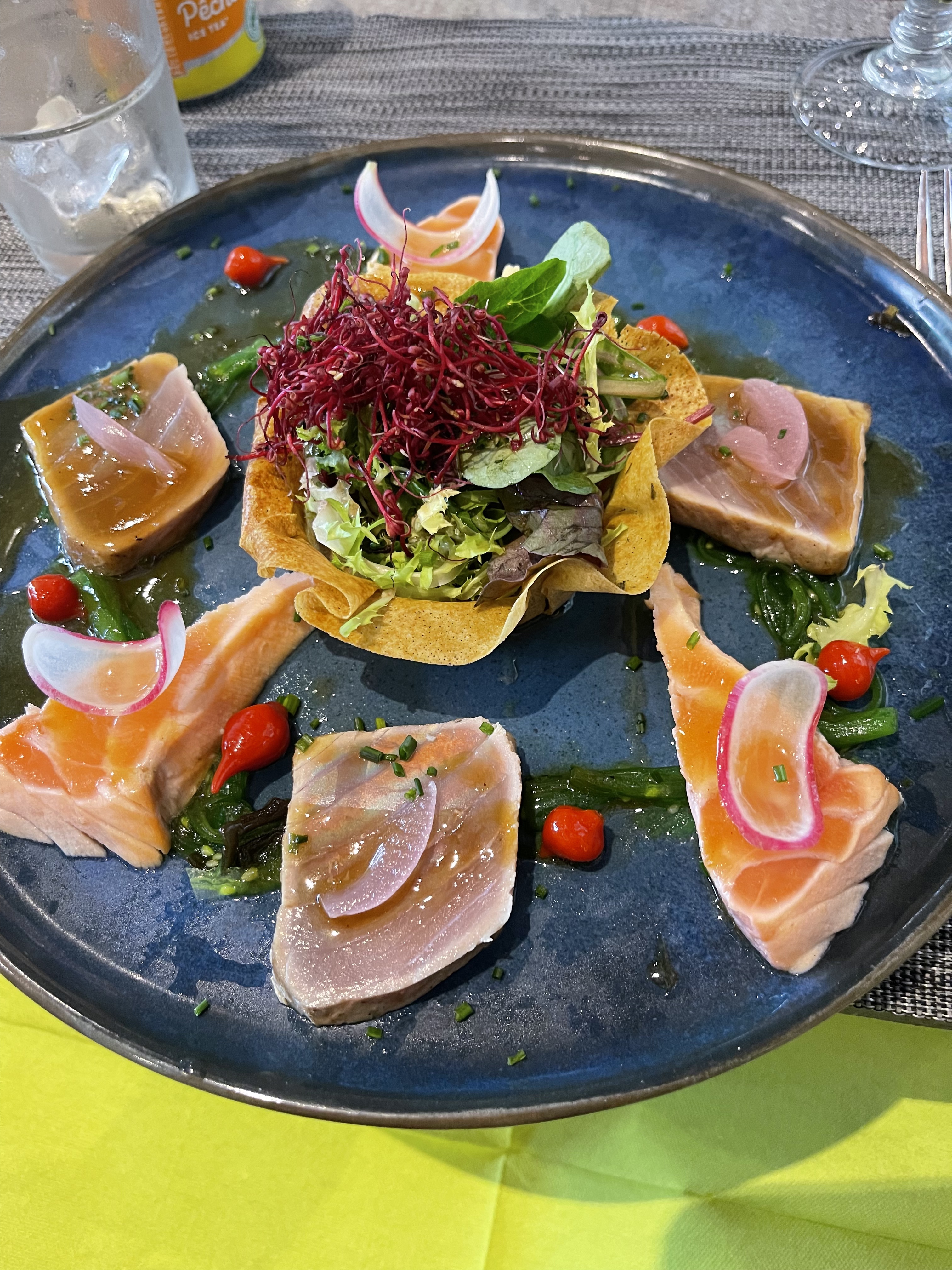 Rouleaux saumon beaucoup trop salés. Le reste correct. Gros point noir : la responsable de salle (peut-être la patronne vu les largesses qu'elle s'autorise avec les clients) a été très autaine lorsque nous lui avons demandé de déplacer une lampe vers notre table pour éclairer l'assiette d'un client de 86 ans ayant des problèmes de vue. Elle nous a reproché de ne pas avoir signalé ce handicap lors de la réservation... encore aurait il fallu savoir que le restaurant serait aussi sombre. Malgré une 2ème demande, nous attendons toujours la lampe. Nous avons du utiliser la lampe de nos téléphones pour solutionner le problème. Elle a bien sûr vu la scène mais aucune intervention ni commentaire à ce sujet !!!. Désolant de la part d'une soi disant professionnelle à qui nous avons laissé un total de 400€. Pour moi la qualité du service étant aussi important que la qualité de la cuisine, je vous invite à passer votre chemin et à cette chère amie de changer de métier.