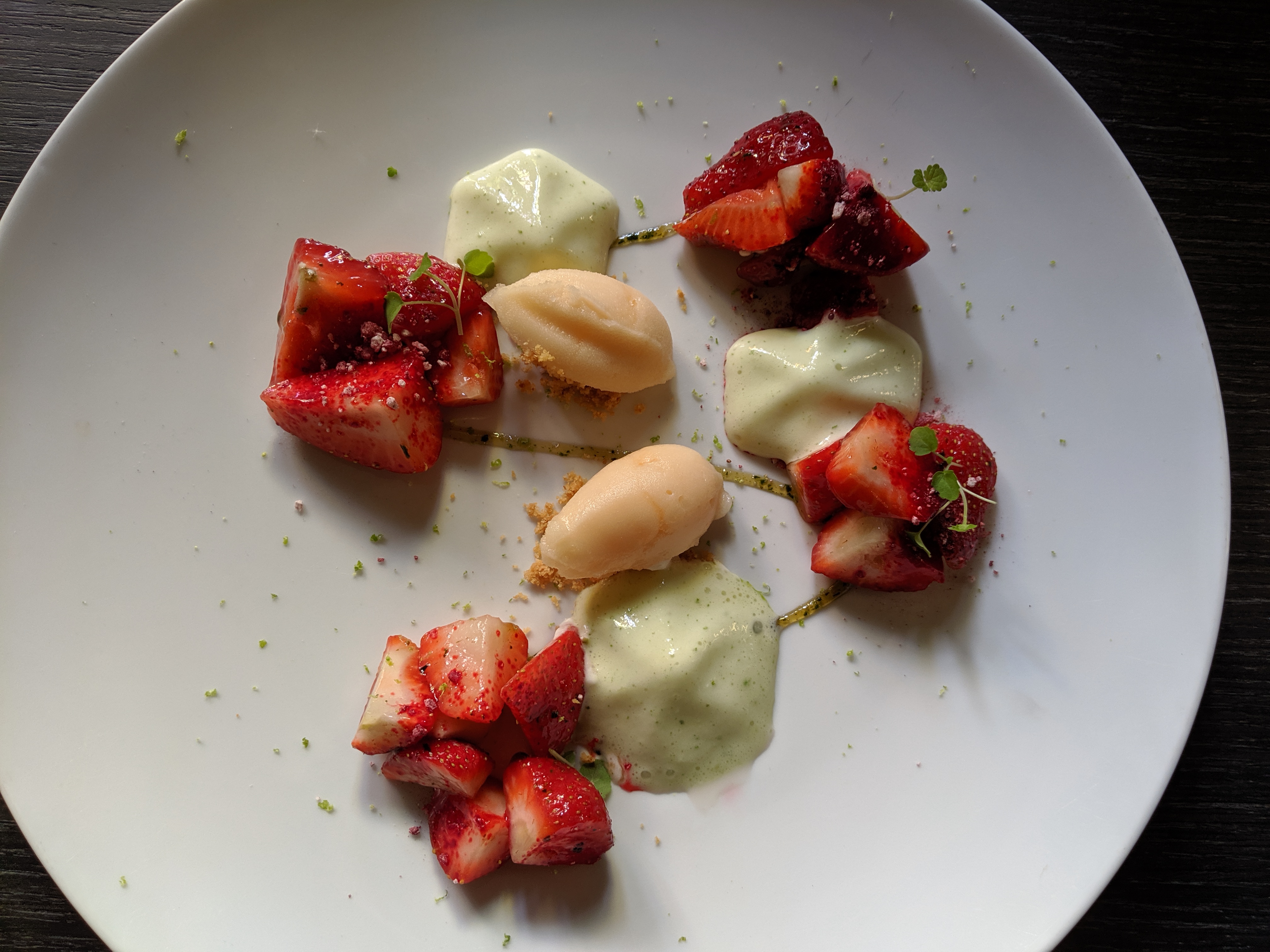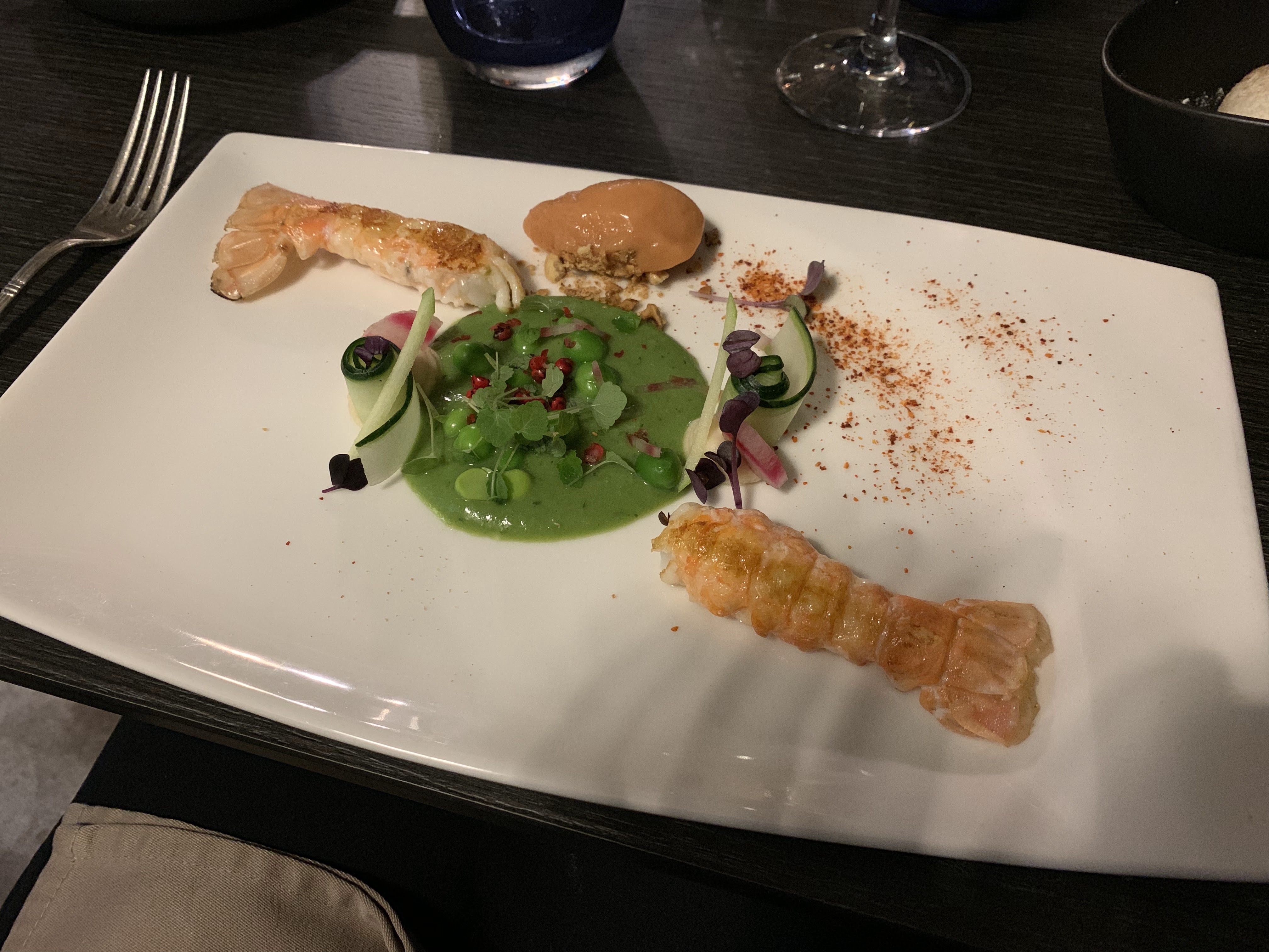 Moment agréable au restaurant et ambiance chaleureuse. Très bon produits frais et associations de saveurs. Savoureuses gambas, avocat grillé, pamplemousse et glace! Délicieuse Saint-Jacques, mousseline de poireaux, châtaignes et sublime sauce Champagne. Tarte figue et surprenante glace vanille estragon.