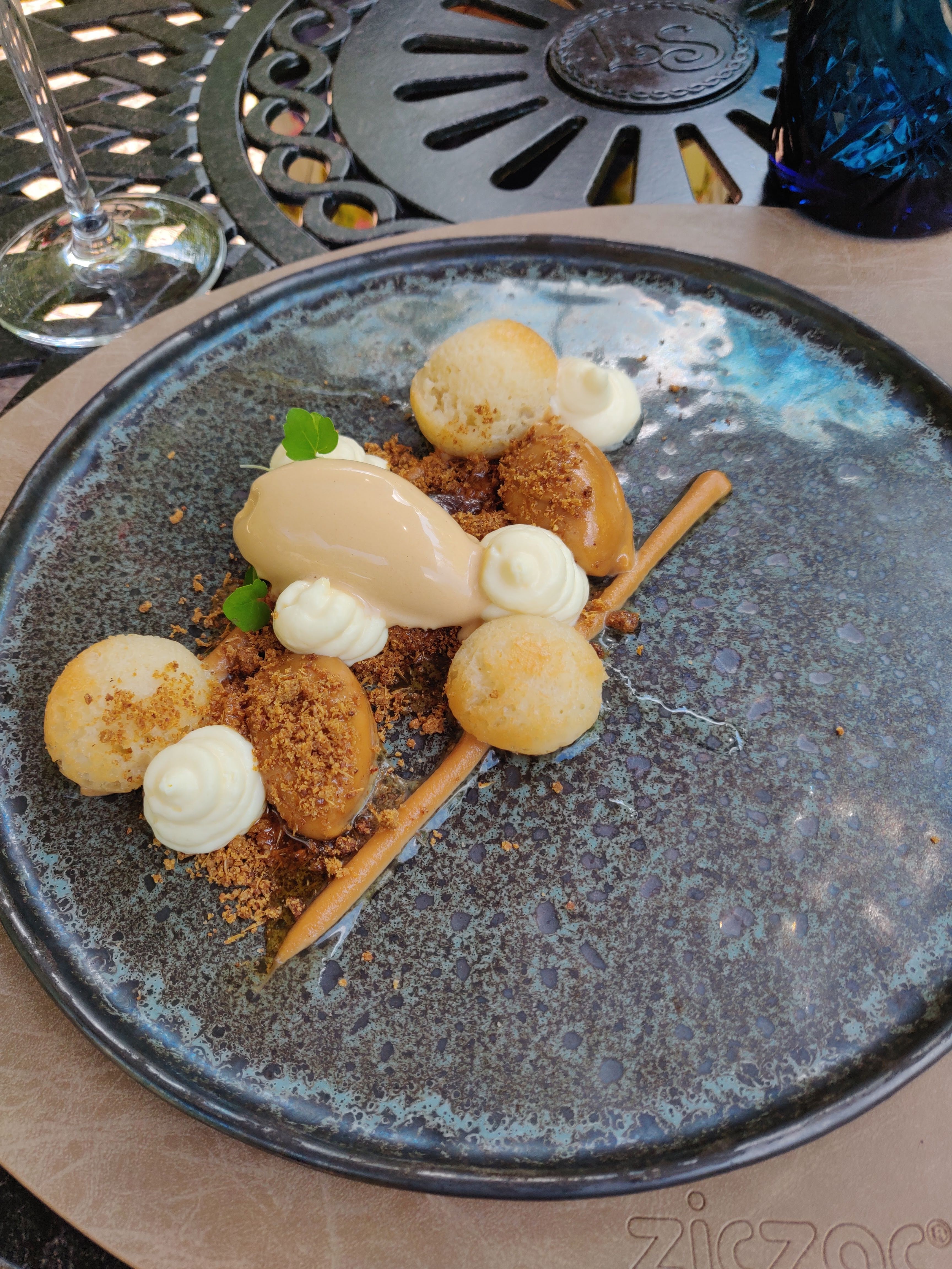Tout était parfait, le service, des assiettes magnifiques et trop trop bon, un mélange de saveurs, exquis, bravo bravo et merci À bientôt Ha oui j'oubliais et ce magnifique parc et de très jolies chambres avec des prix raisonnables Merci merci à bientôt