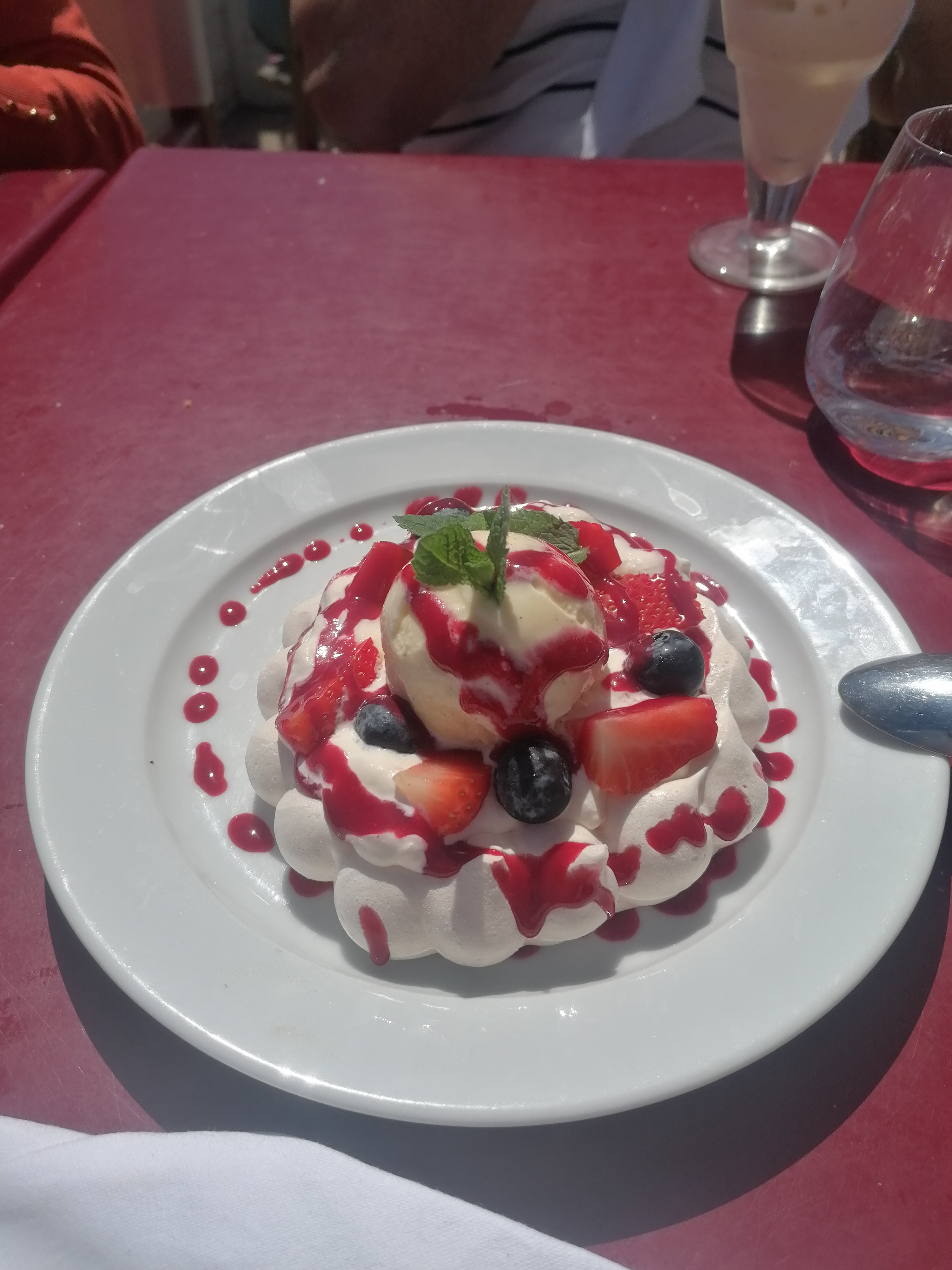 Je n'ai que peu apprécié ces spaghettis vongole et que dire de la pavlova qui n'était qu'une boule glace recouverte d'une meringue coulis fruits rouge 😭