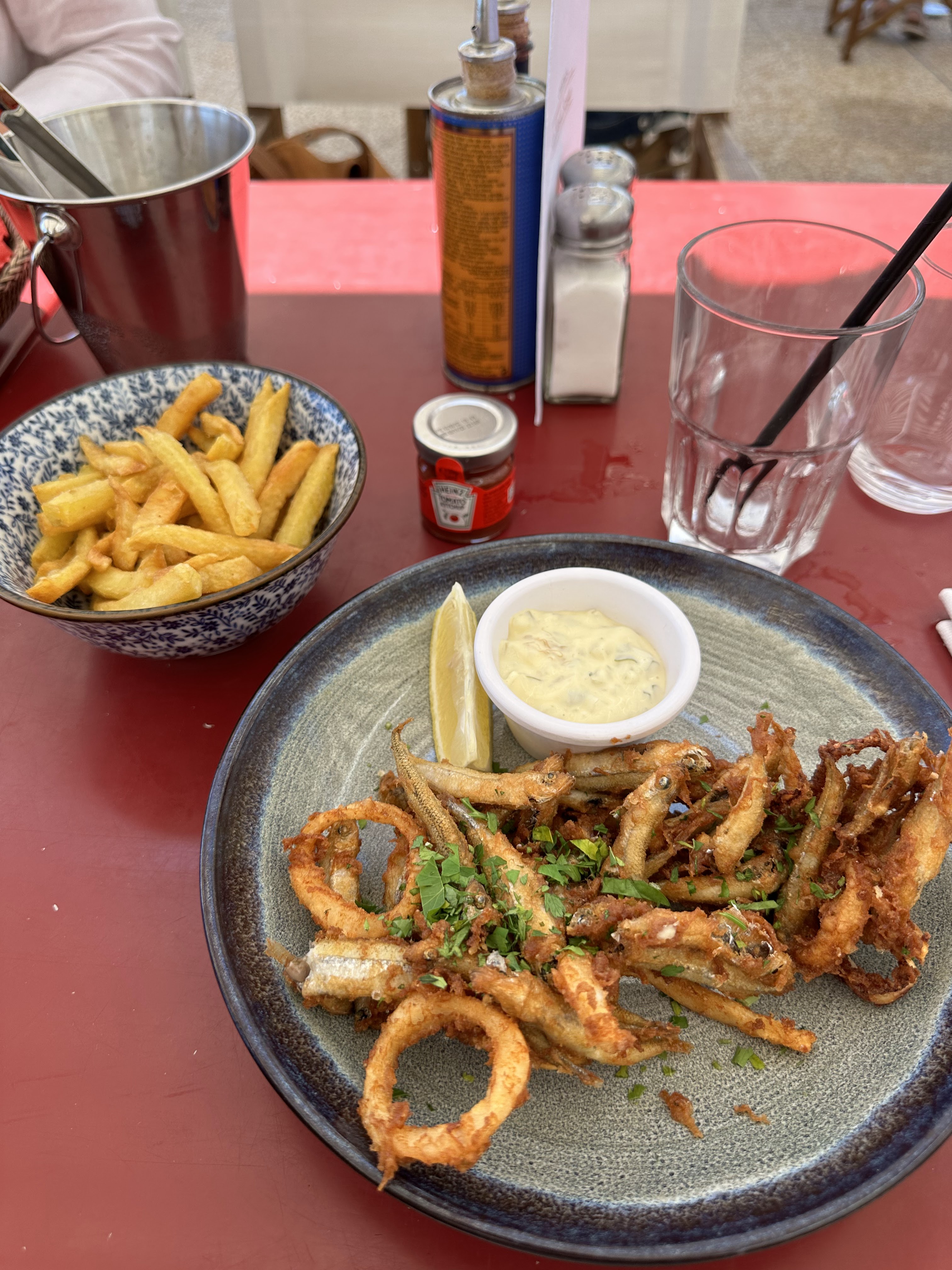 L’emplacement est superbe, par contre l’accueil n’est pas agréable, le chef des serveurs souffle quand on demande si on peut déjeuner «pas de réservation ? bon pffff je peux vous mettre là » , service sans un sourire, sable dans nos assiettes gnocchis aux moules, on demande l’addition et le serveur nous dit « faut demander a votre serveur » et s’en va. Merci Monsieur vous pouvez éviter de dire ca et répondre oui je préviens votre serveur pas de problème. Et quand on paye l’addition le chef des serveurs ne décroche toujours aucun sourire mais dit a haute voix « le carnage » en faisant la moue comme notre fils de 2 ans a mis quelques spaghettis sur la table et un peu par terre. C’est un jeune enfant c’est normal, le genre de commentaire désagréable qui reste en tête du client. Bref amabilité a revoir et bon la sauce curry était bonne mais le sable dans la sauce aïe.