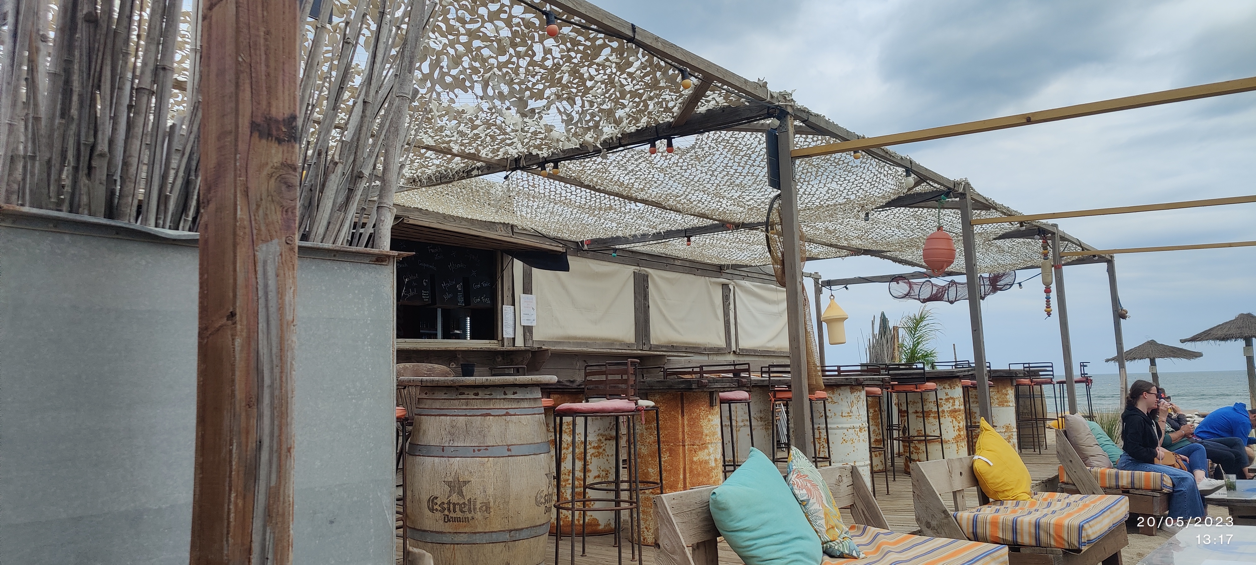 Au calme, lounge, tranquille en ce moment. C'est d'ailleurs le dernier jour. Démontage à venir ! Sinon le personnel est agréable, tables basses, canapés, chaises longues... Tout pour profiter du moment, sur le sable fin en bord de mer ! Idéal en famille même avec bébé ! Je recommande.