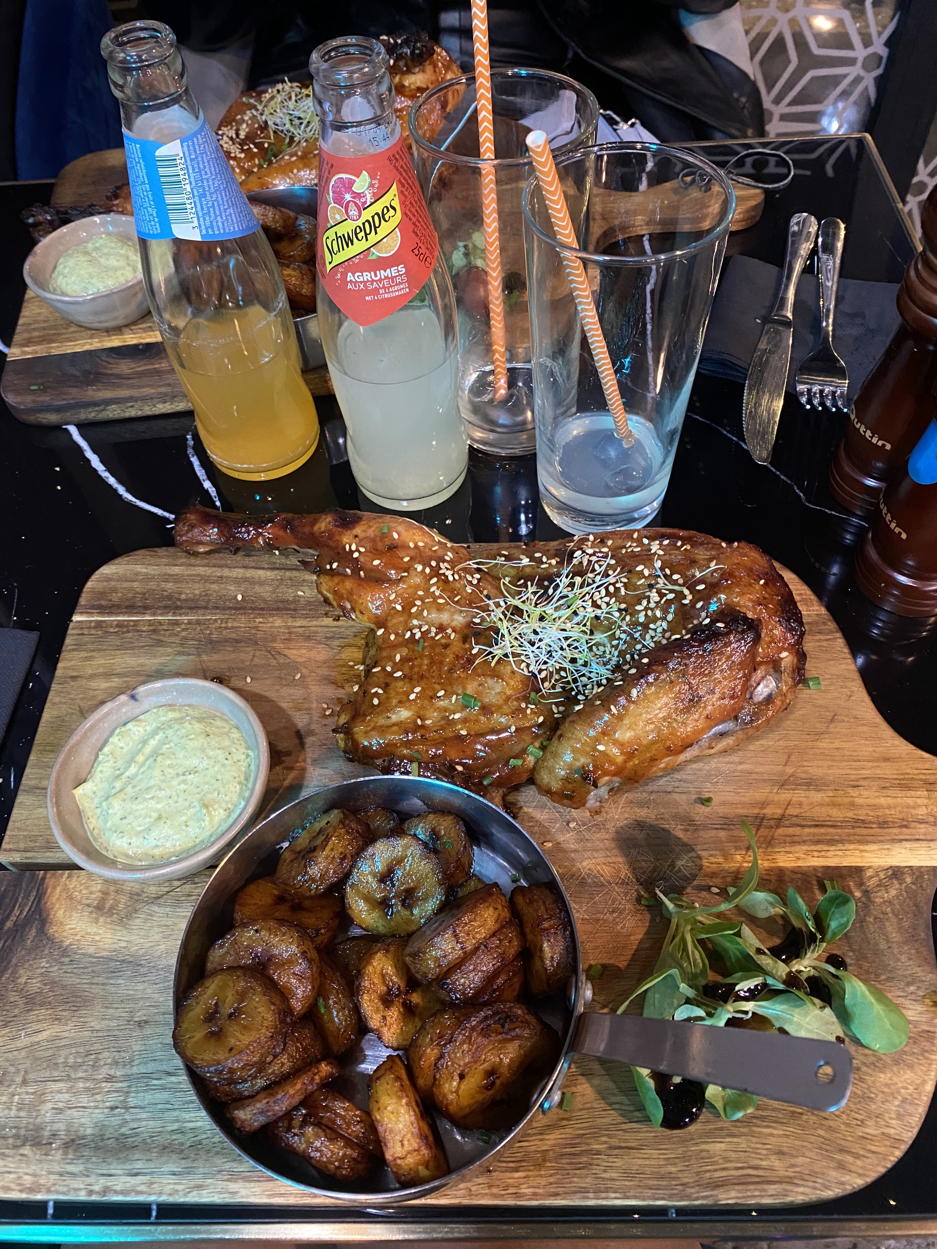 Très étonnée de tout ces avis positif🧐 L’intérieur est beaucoup plus petit qu’il ne parait sur les photos Instagram Demi poulet et pomme de terre grenaille immangeable !! J’ai rendu le plat entier, j’ai fais part de mon insatisfaction, aucun geste n’a été fait. La réponse était « c’est une nouvelle dans la cuisine » À fuir !!!