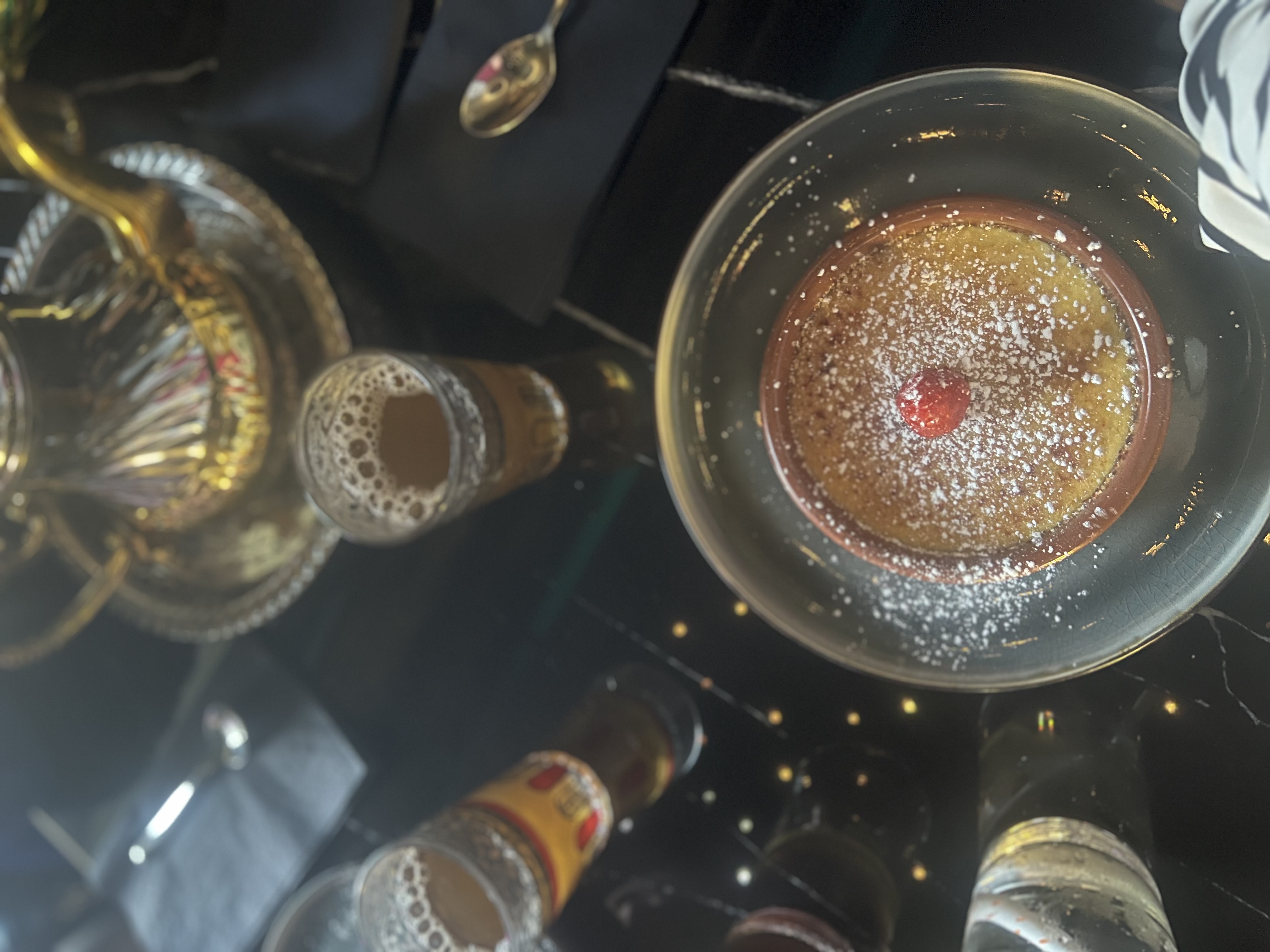 Personnel, très accueillant, déco magnifique, les repas délicieux et servis chaud sans attendre des heures. Les chicha kaloudsont excellente. Les lieux sont propre que ce soit en famille ou soirée entre ami .. Je reviendrais merci
