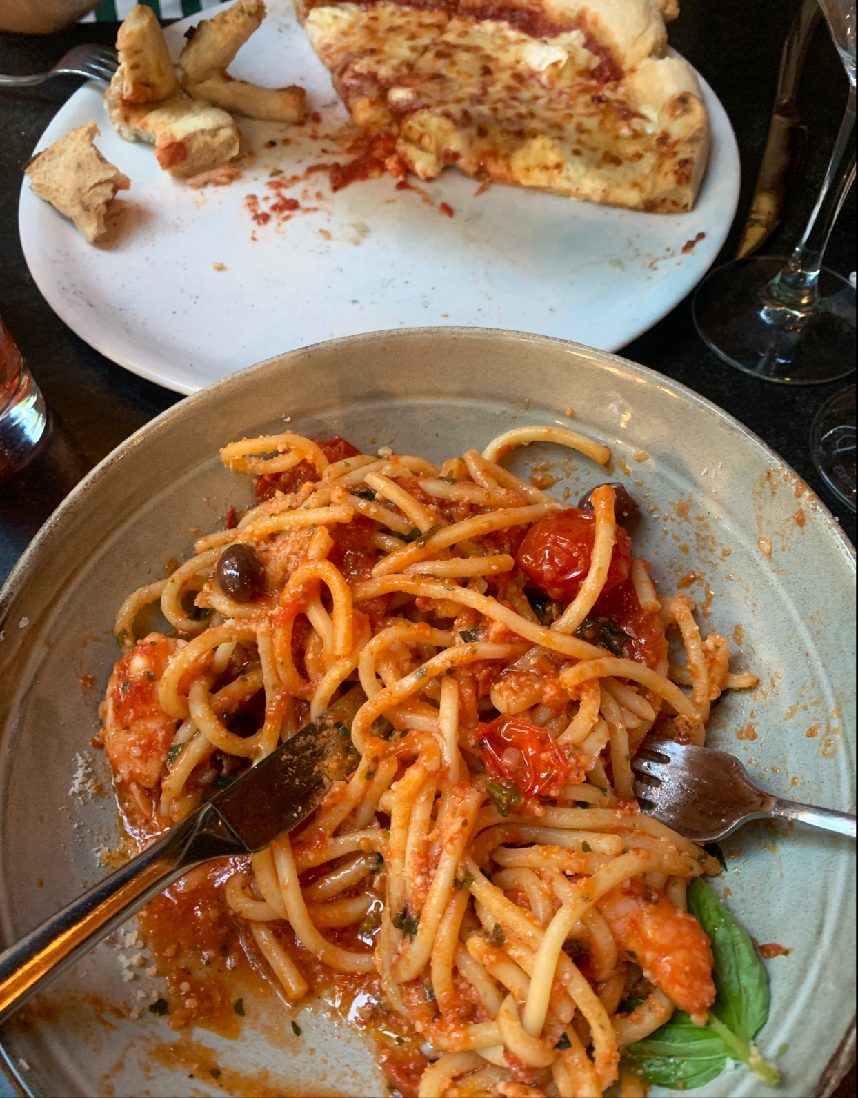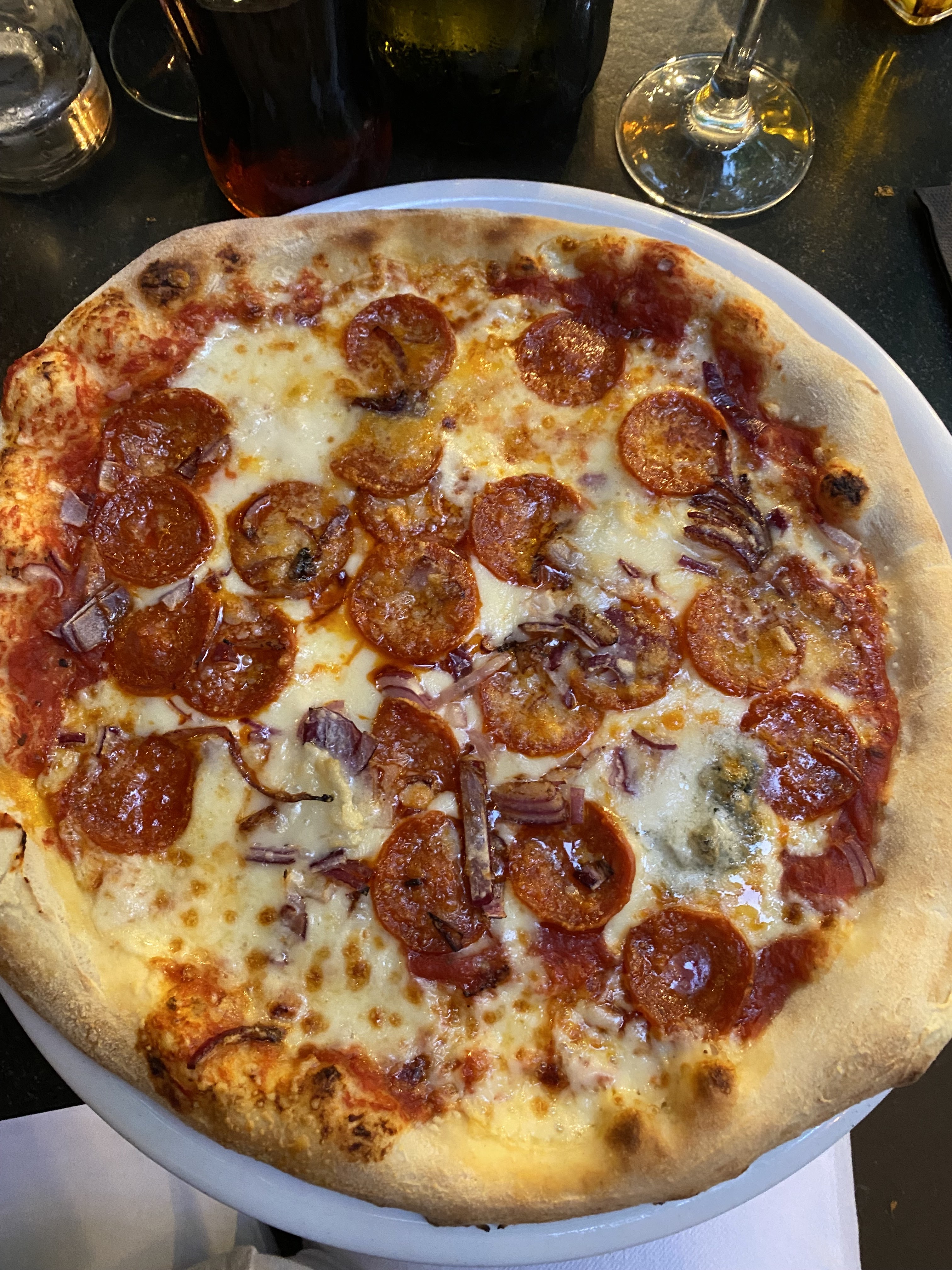 Les pâtes un peu décevantes mais des pizzas waouh ! Le serveur qui me dit c'est probablement pas les meilleures pizzas du monde mais on s'en sort bien.. Bah ouais mon gars, elles sont très bien vos pizzas !