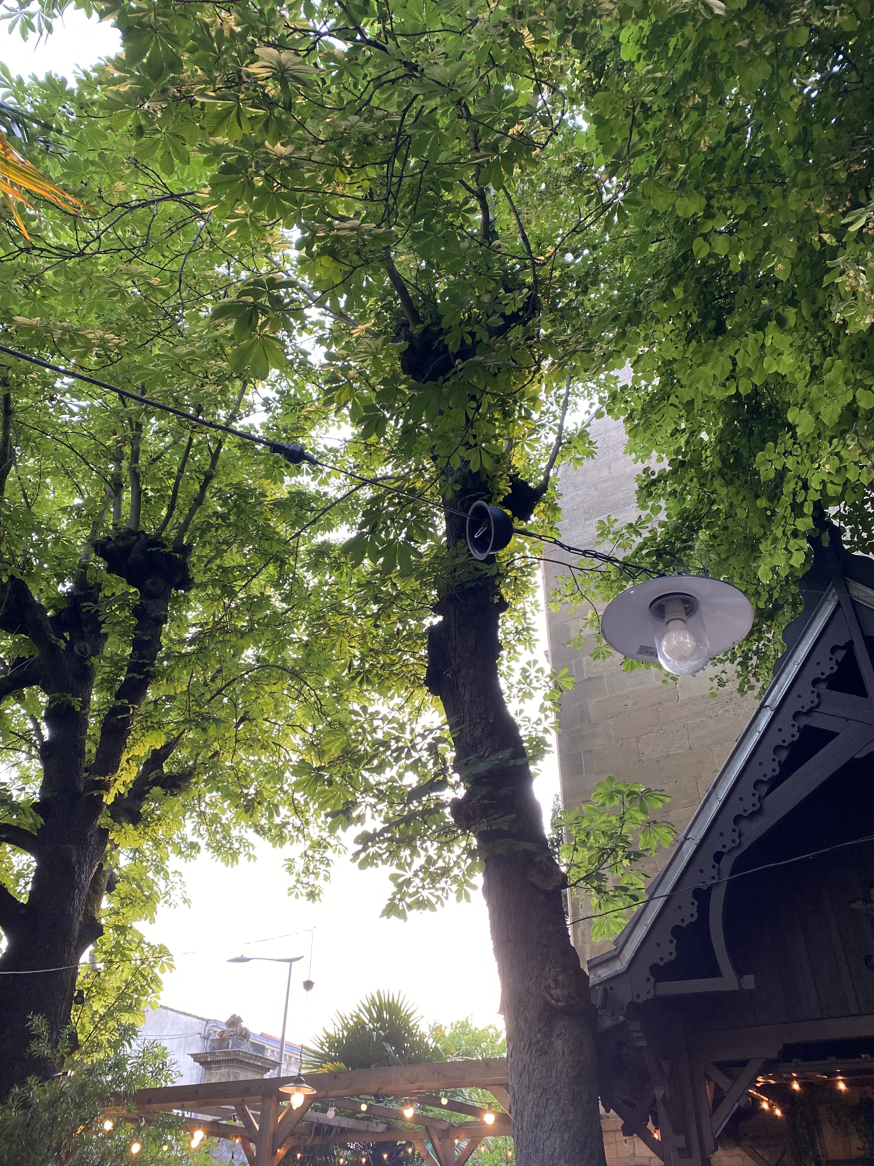 Quel endroit amusant près du centre animé de Bordeaux. C'est une véritable oasis dans cette ville animée. La cour avec ses nombreux arbres offre une escapade parfaite à distance de marche. Asseyez-vous dehors et dégustez une délicieuse bière fraîche ou un excellent vin à l'apéritif. C’est parfait pour une chaude journée d’été ou tant que le soleil est au rendez-vous au printemps. Bordé de maisons, vous n'êtes pas gêné par le vent et pouvez vous détendre dehors même par temps plus frais. La nourriture était bonne, même si les plats de viande manquaient un peu d'inspiration. Le service était excellent et je recommande vivement cet endroit.