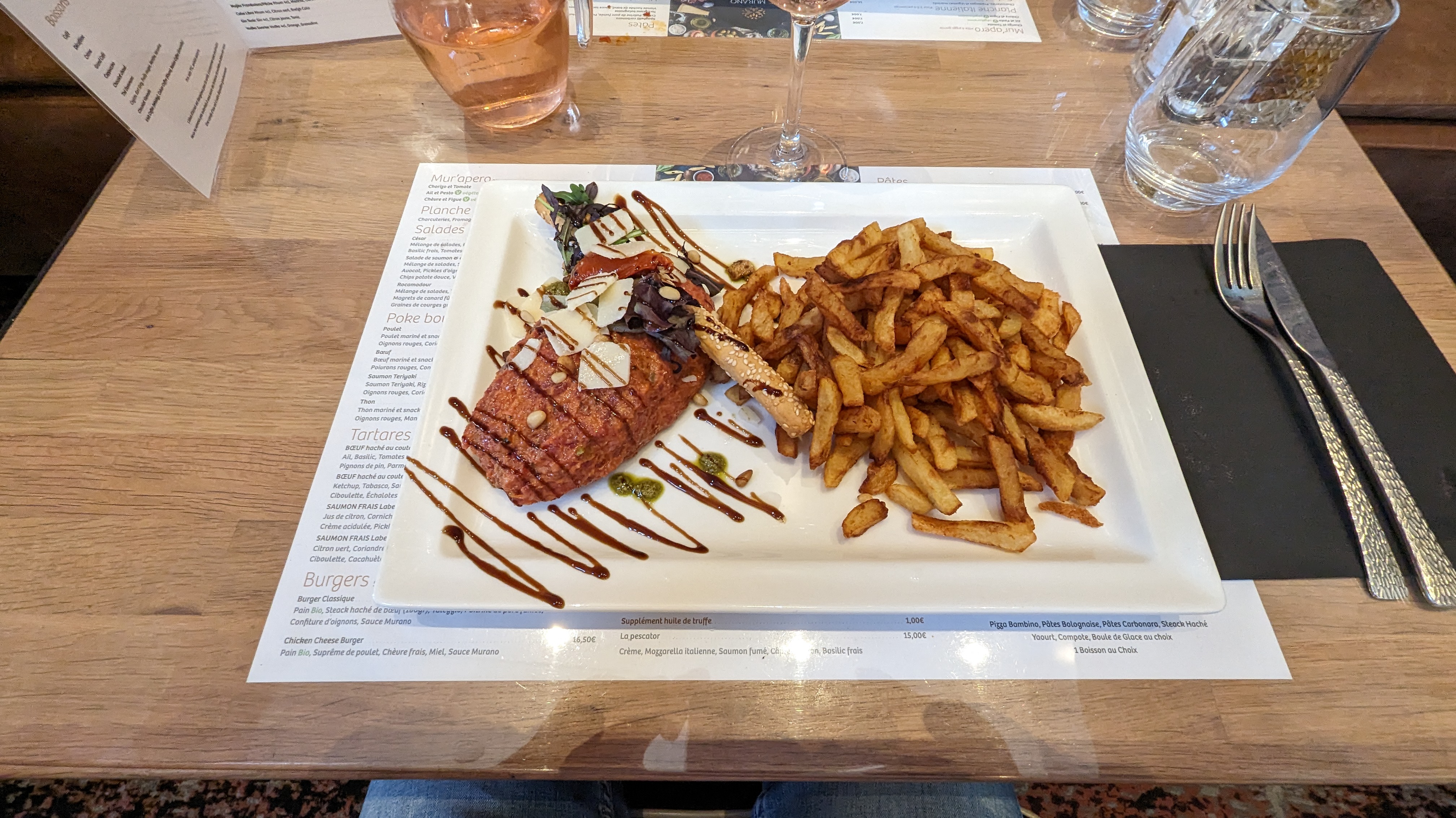 Ca avait l’air pas mal mais j’ai pas eu le droit d’avoir un steak haché parce que j’ai plus de 12ans du coup j’ai mangé que des frites :)