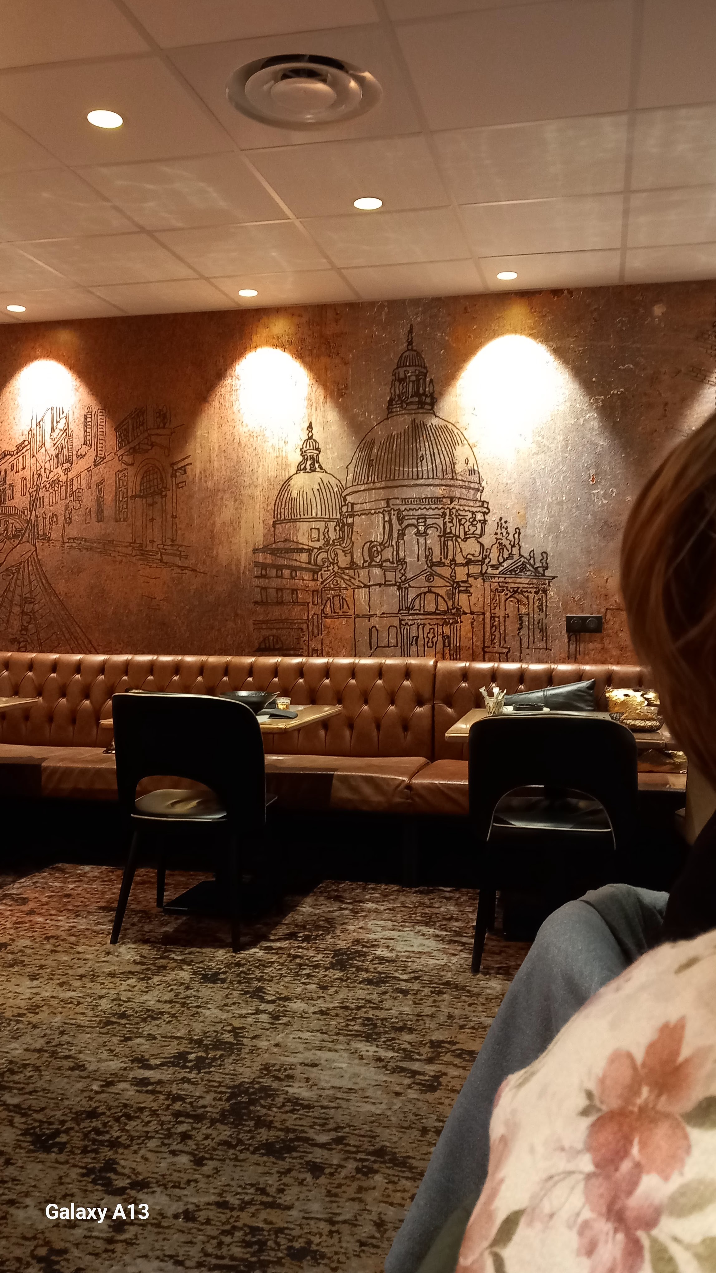 Déjà dès l'entrée, vous entrez dans l'ambiance italienne avec son décor et son superbe lustre, un choix divers de menus, j'ai pris un tartare de saumon et je me suis regalée. Je recommande vivement!!