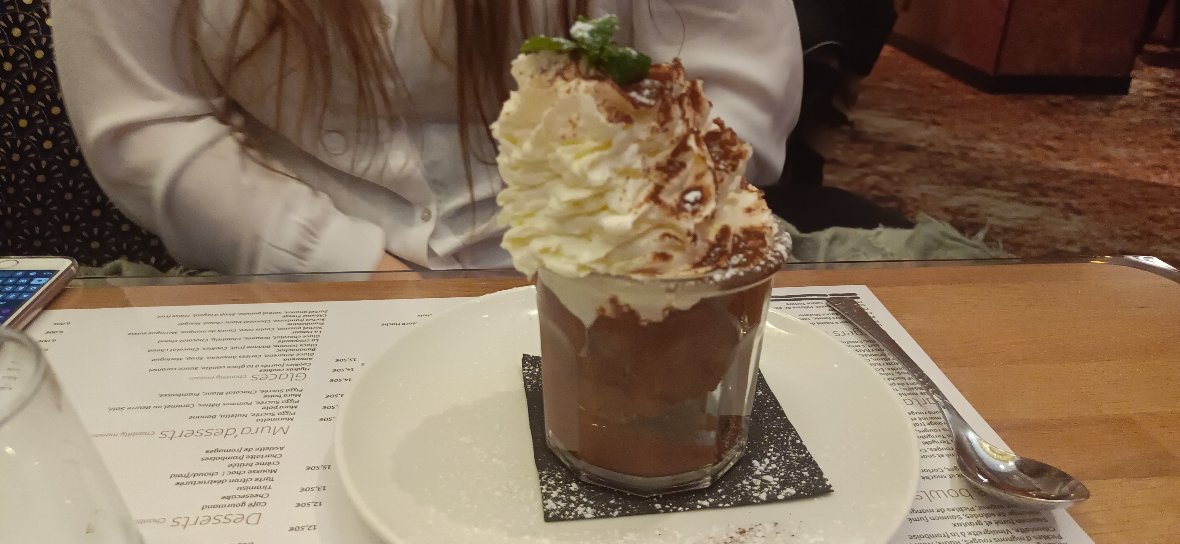 Très bon service, la pizza était bonne sans plus, cependant le tiramisu et/ou le chocolat qui l’accompagnait n’était pas super, on dirait plus de la chantilly que de la mascarpone et pas de goût de café, le chocolat avait un goût particulier, je me suis dit qu’il n’était peut-être pas sucré mais vu l’ingestion qui a suivi, c’est qu’il y avait quelque chose de pas très frais… les dessert sont chers 8€ pour la plupart… pas sûre d’y revenir de ma propre volonté!