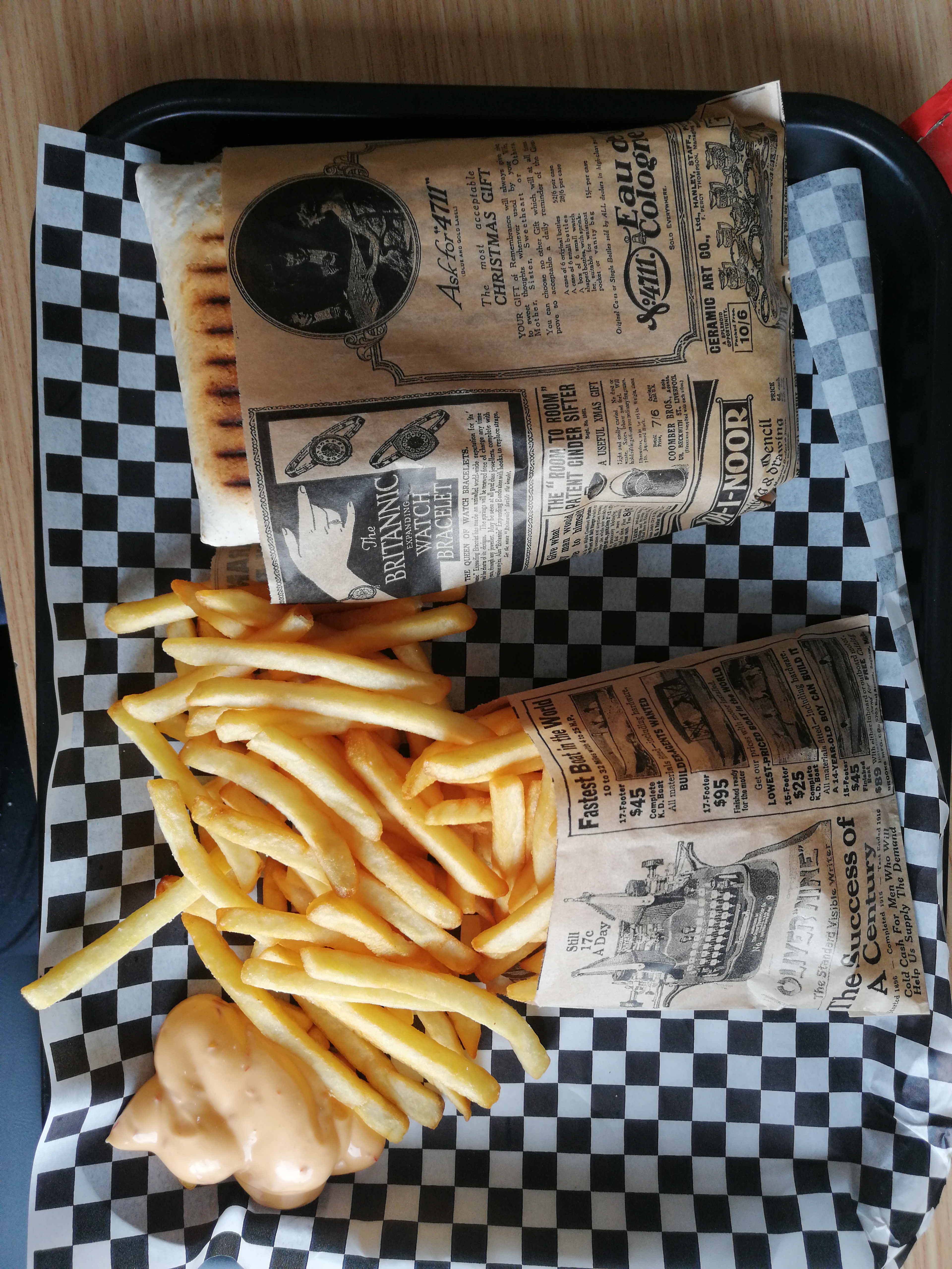 Très bon repas je me suis régalé ! Le plat est toujours bon même le lendemain ! ( pas pu le finir car il est très complet donc tien bien au ventre ☺️ Très bien organisé dans le sac aussi Juste peut être changer la où les frites sont transportées car l’huile sur les frites traverse après ce n’est pas dérangeant