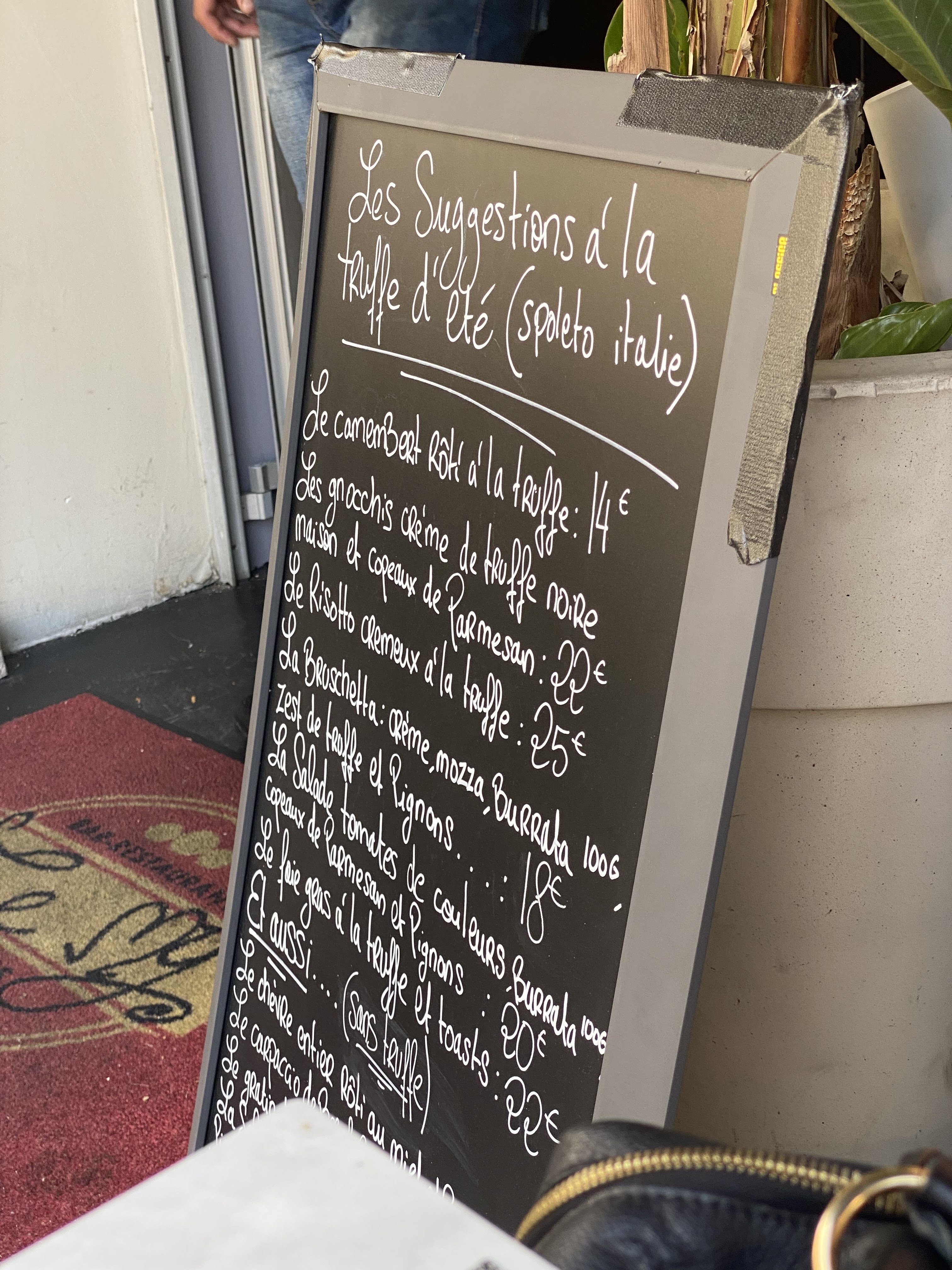 Etant un client chiant, je suis arrivé en étant déçu car les suggestions sur ardoises ne se faisait pas le samedi soir. La carte truffée ne m'inspirait pas. mais bon par dépit nous prenons une assiette grecque pour 2 et un risotto a la truffe et un camembert rôtie a la truffe. Et là !!!! Le voyage commence. Une simple assiette grecque juste excellente faite maison, un risotto sans faute et l'idée de génie... Associer la truffe italienne et le camembert.. Juste sublimissime. L'équilibre entre la truffe fraiche (le chef me les a montré) et l'arôme naturel de truffe est équilibré et permet de s'éclater gustativement sans se ruiner... A RECOMMANDER SANS DEMI MESURE... Bravo les jeunes..