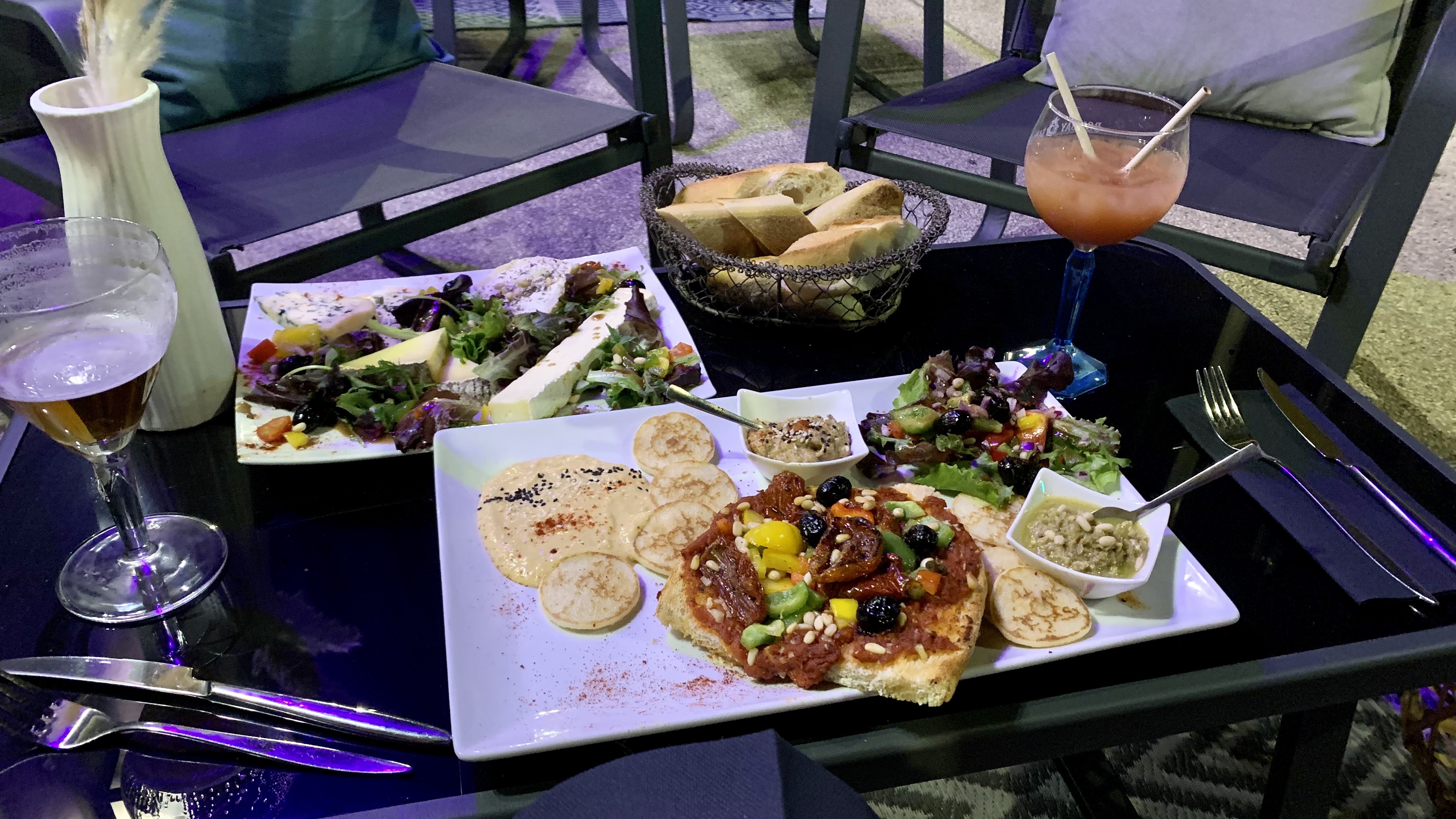 Un moment plutôt sympathique, cocktails et planches vraiment bien mais malheureusement une serveuse bien désagréable… (peut être un mauvais jour ?).