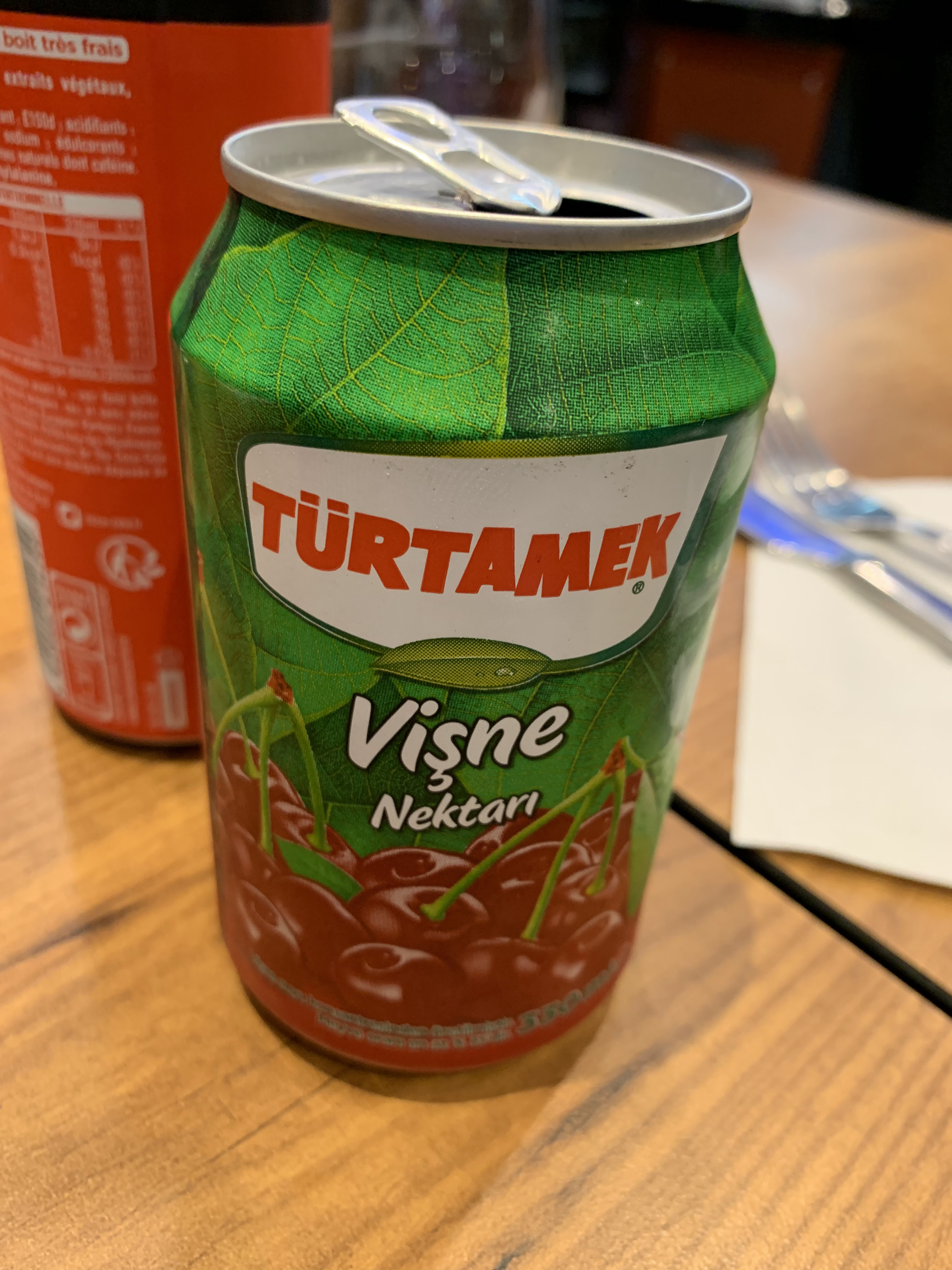 Nous avons décidé d'éviter les lieux touristiques pour le reste de notre séjour à #Paris. Nous avons dîné dans un restaurant #turc qui propose des repas rapides. Chez #Myndos, la nourriture était vraiment bonne et les propriétaires et le personnel étaient super. Les enfants ont adoré les sandwichs au poulet et aux frites. Ma femme et moi avons mangé des brochettes de poulet avec des frites et du riz. J'avais aussi quelques boîtes de nectars de cerises turques.
