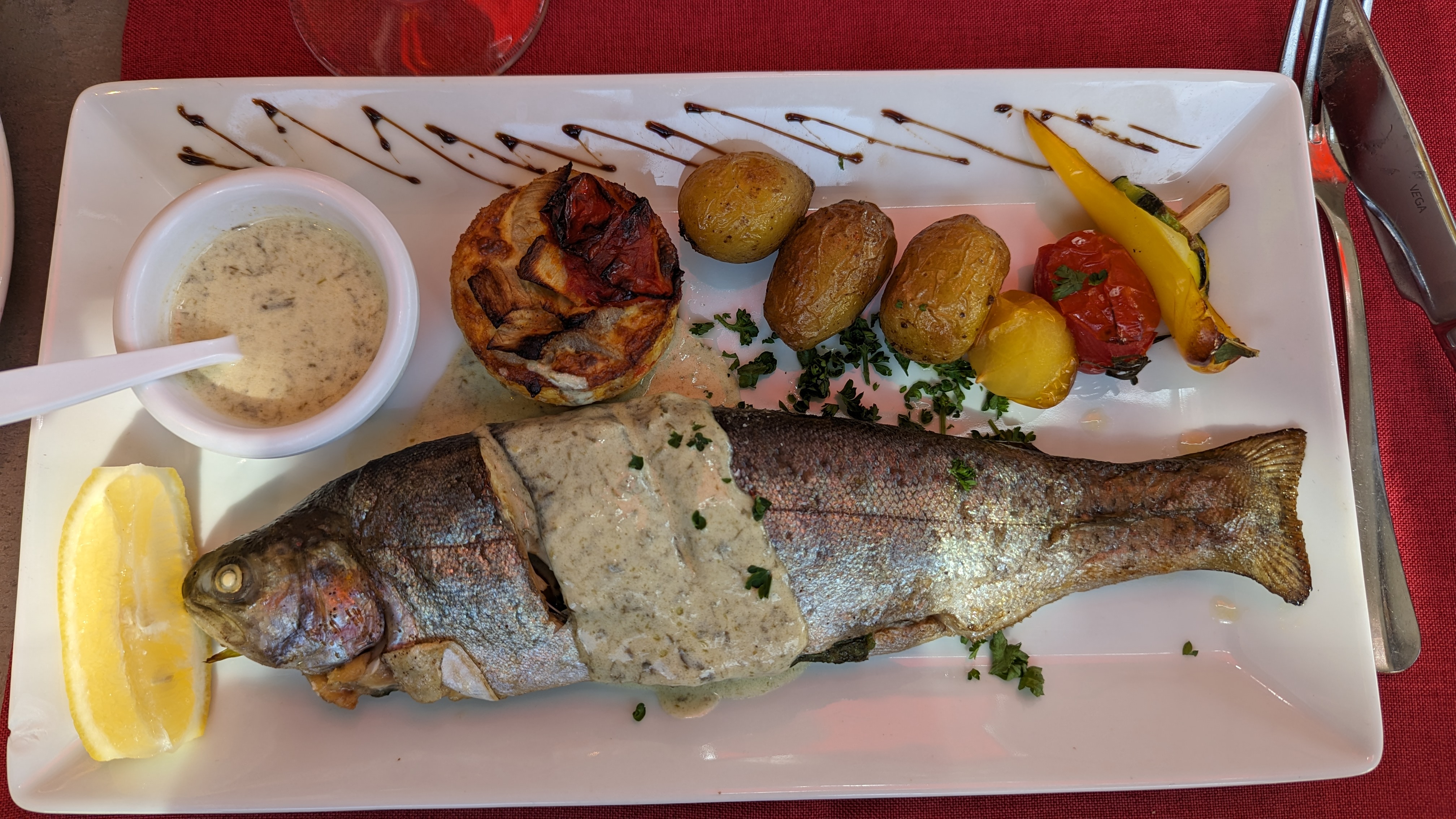Tout était délicieux, rillettes de poisson en entrée, bar et petits légumes, café gourmand. Très bon accueil, personnel très agréable, service rapide. Une bonne adresse à conserver