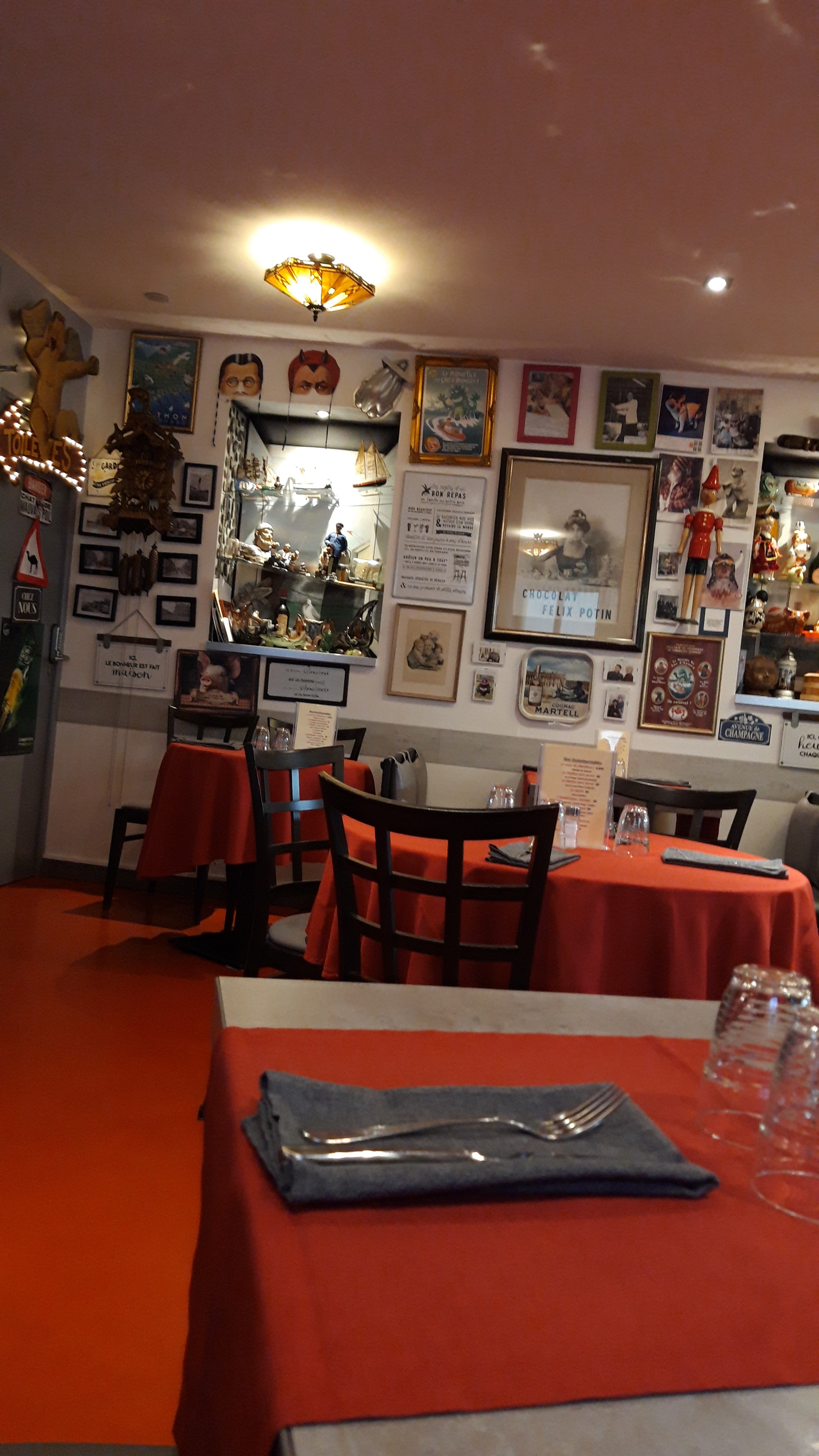 Un Bistrot atypique à ne surtout pas rater ! Possibilité de se garer à proximité, un accueil chaleureux et sympathique : le tutoiement est de rigueur et ça vous met à l'aise de suite. Ensuite nous avons pris escargot et rillettes de poissons , suivis une marmite de la mer chacun, C'était fin ,exquis et copieux : personnellement j'ai rendu une assiette toute propre ! En dessert une crème caramel et un thé gourmand pour madame . Et la cerise sur le gâteau nous avons droit aux médicaments du patron pour une bonne digestion. Bref un endroit à ne pas rater : à très vite !