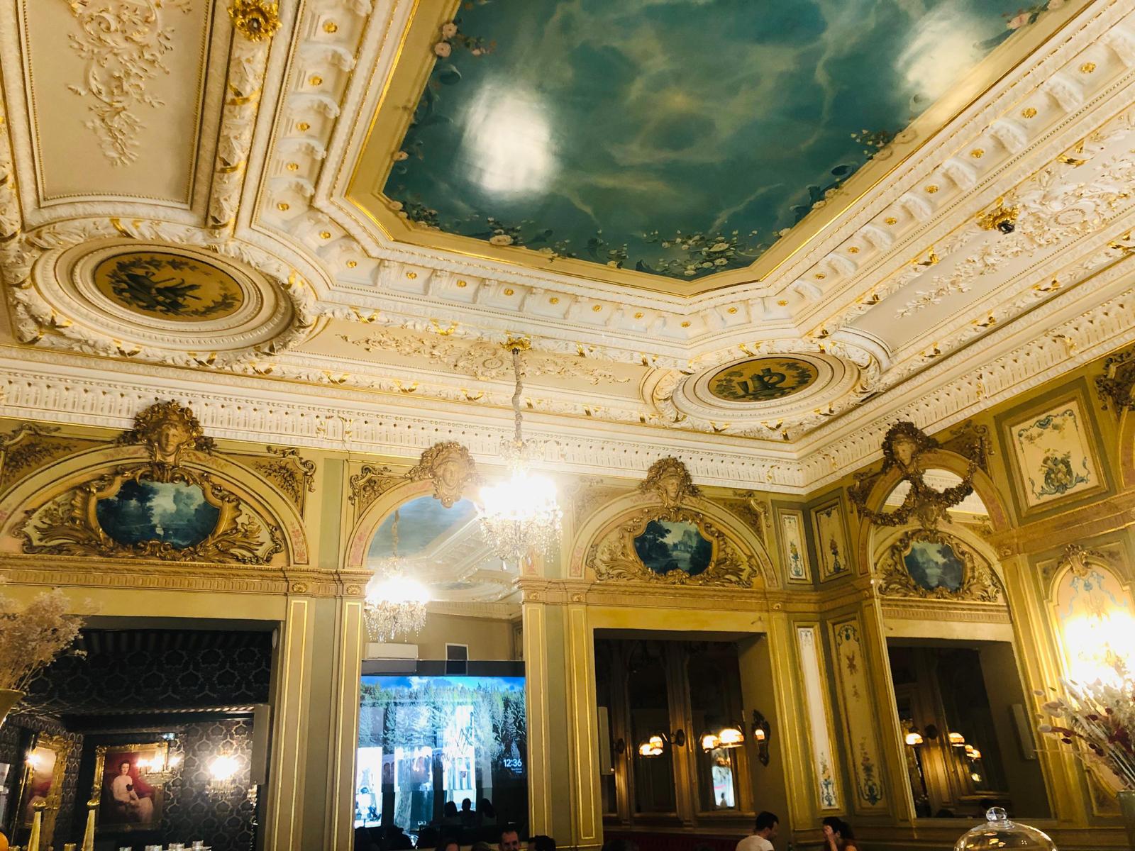 Un café restauré , le plafond et les dorure magnifique, sauf le mobilier dans la grande salle pas top, les nouveaux propriétaires l'ont changer.