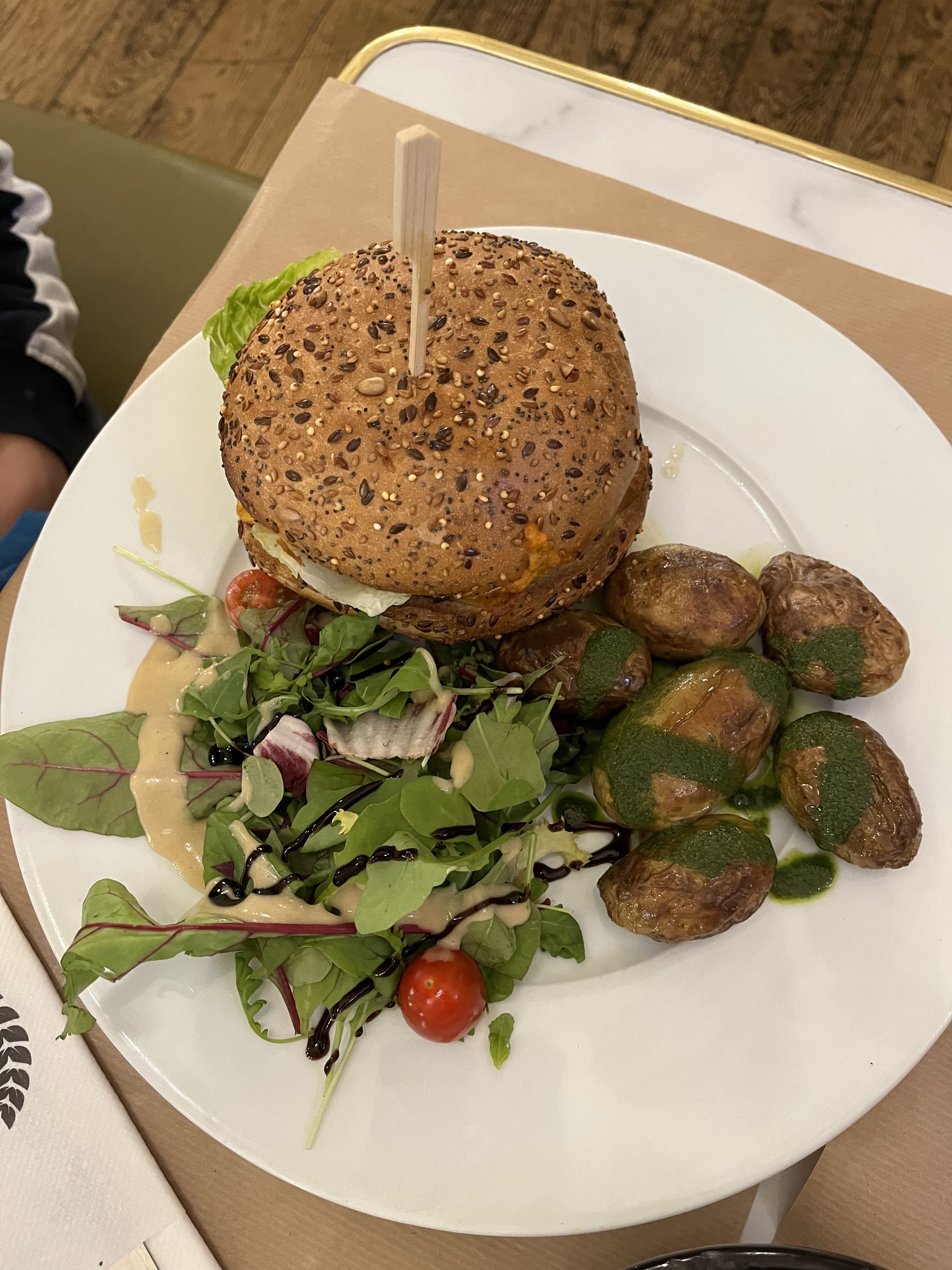 Endroit sympa pour manger à midi :) Service ok, peut mieux faire. Bcp de personnes donc p e débordé mais notre commande n'a pas été respectée (oubli d'une entrée à partager).
