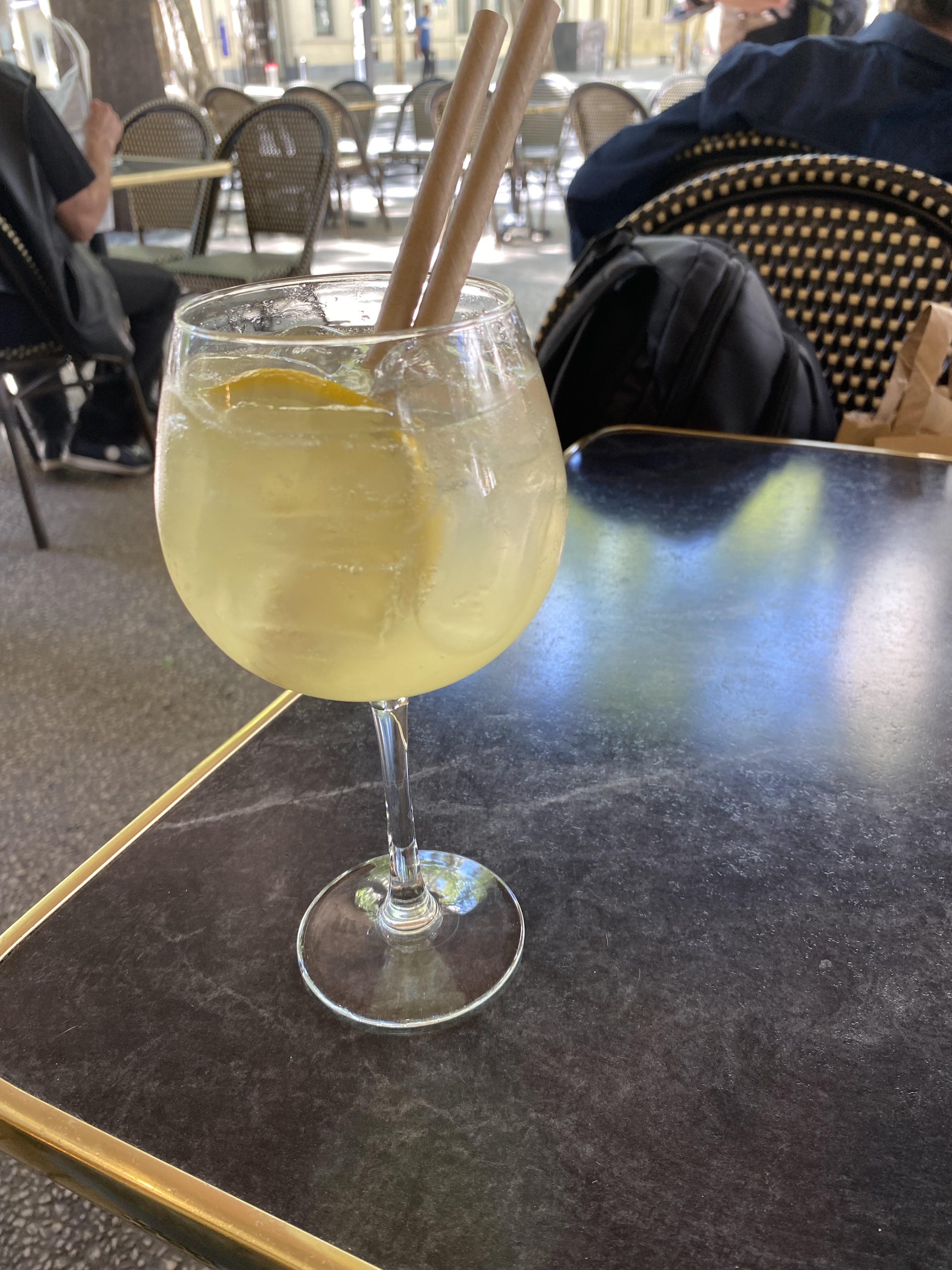 Suis étonnée. Je demande un Gin Tonic. On me le sert dans un verre et non dans la bouteille... On me dit que le gin tonic en bouteille est 3 fois plus cher que celui servi dans un verre tout fin.. Je suis sceptique.... C'est la première fois.... 😝😜. Bref à suivre