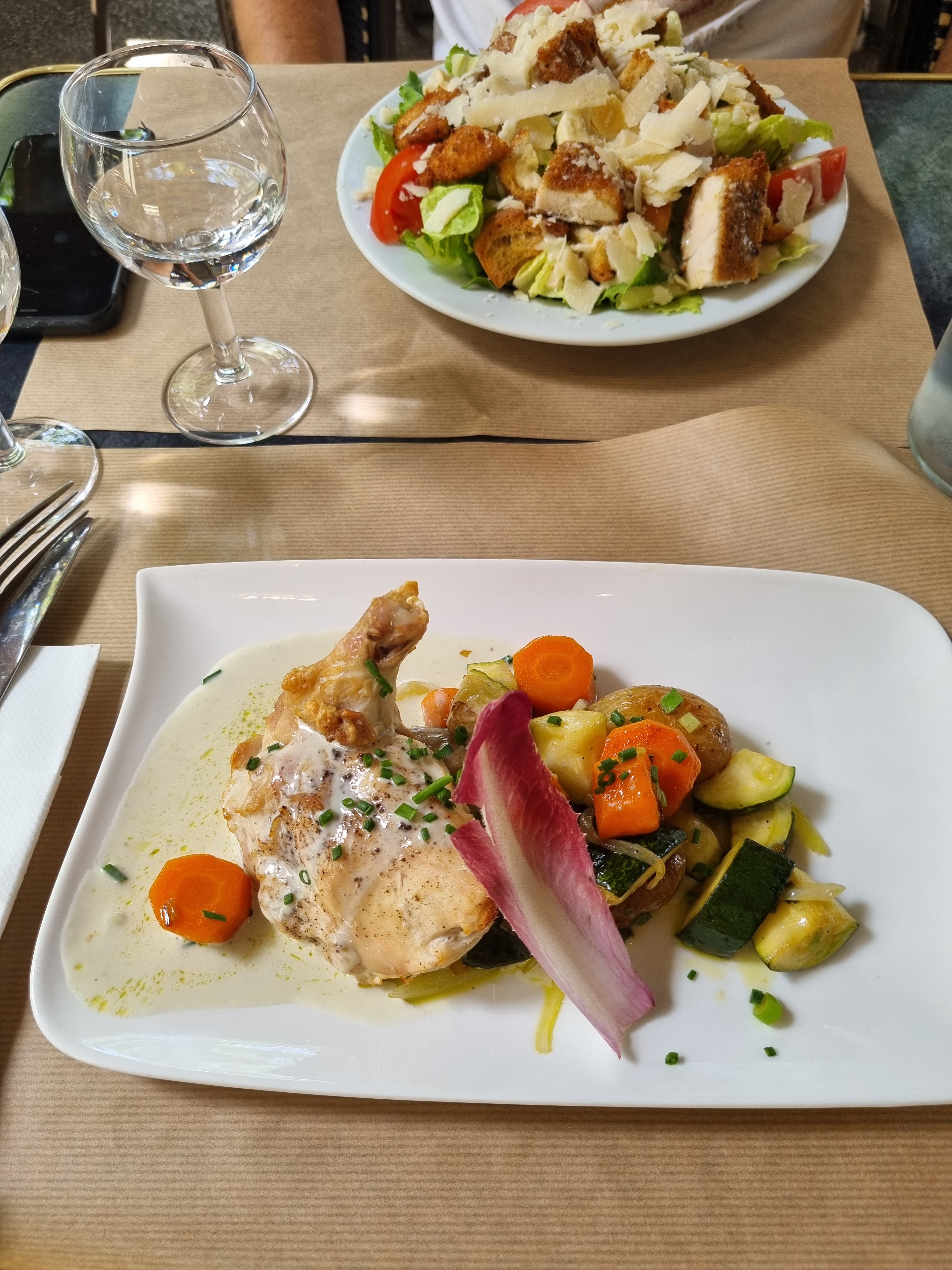 Juste parfait en tout point. Croustillant au chèvre sur son lit de salade en entrée, confit de canard avec sa sauce moutarde en plat principal accompagné de petite verdure d'endive, le tout pour 14,90€ Estomaqué par la prestation sans compté la disponibilité des serveurs qui sont agréables et à l'affut de l'expérience du client avec le cadre même si factice enivre de luxure. Je m'attendais à quelque chose de correct je suis repartis épaté, incroyablement satisfait.