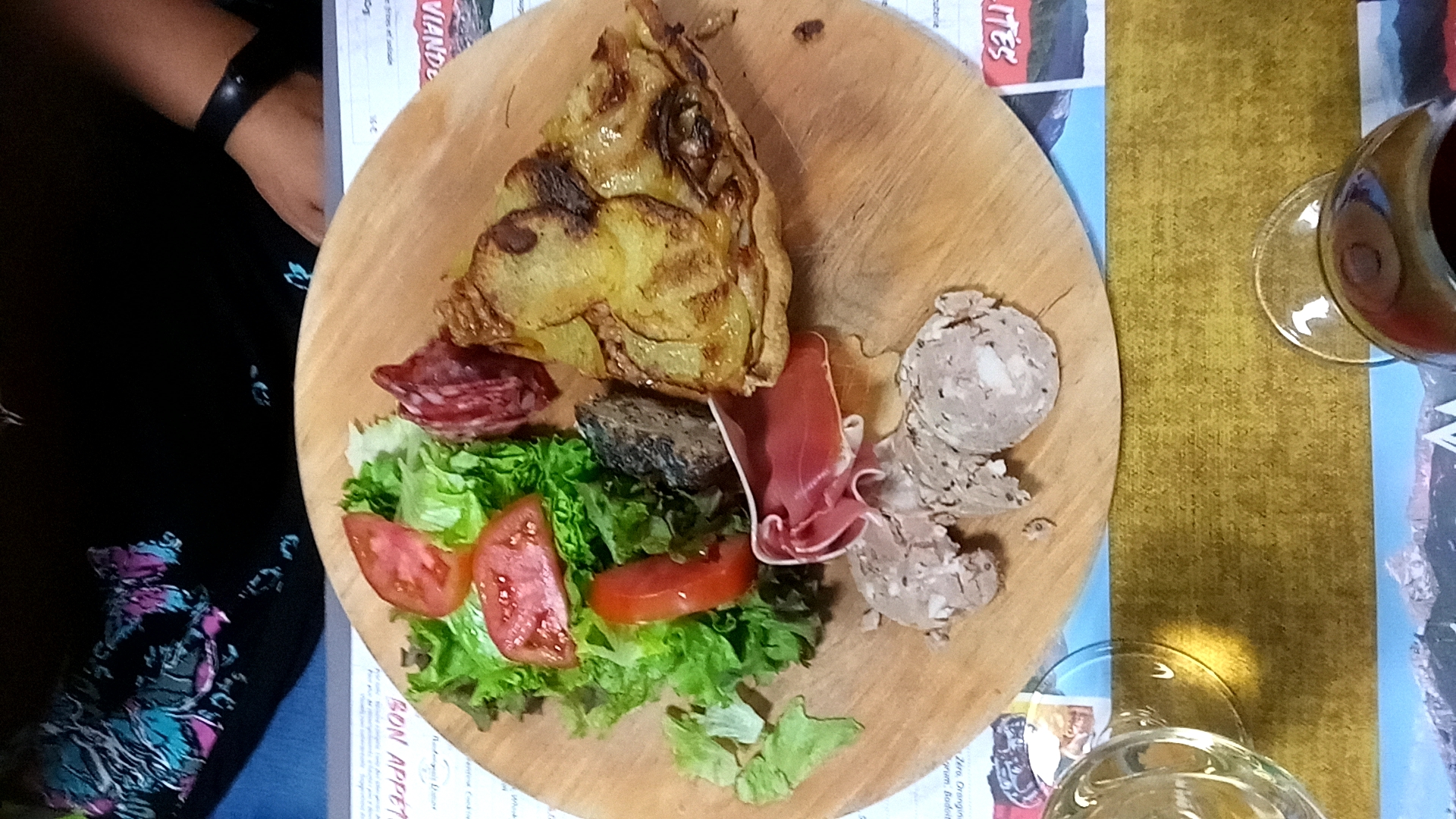 Déçu par la boîte chaude, le fromage était assez insipide alors qu’en général c’est du Mont-d’or. Une salade avec sauce balsamique qui n’a rien à faire là accompagné de quelques rondelles de charcuterie. Le pire c’est surtout osé servir ça avec des frites 😱, aucunes patates à l’eau. Les propriétaires ne sont pas vraiment souriants, ça serait quand même mieux. Une visseuse nous tenait compagnie sur la table d’à côté pour l’anecdote.