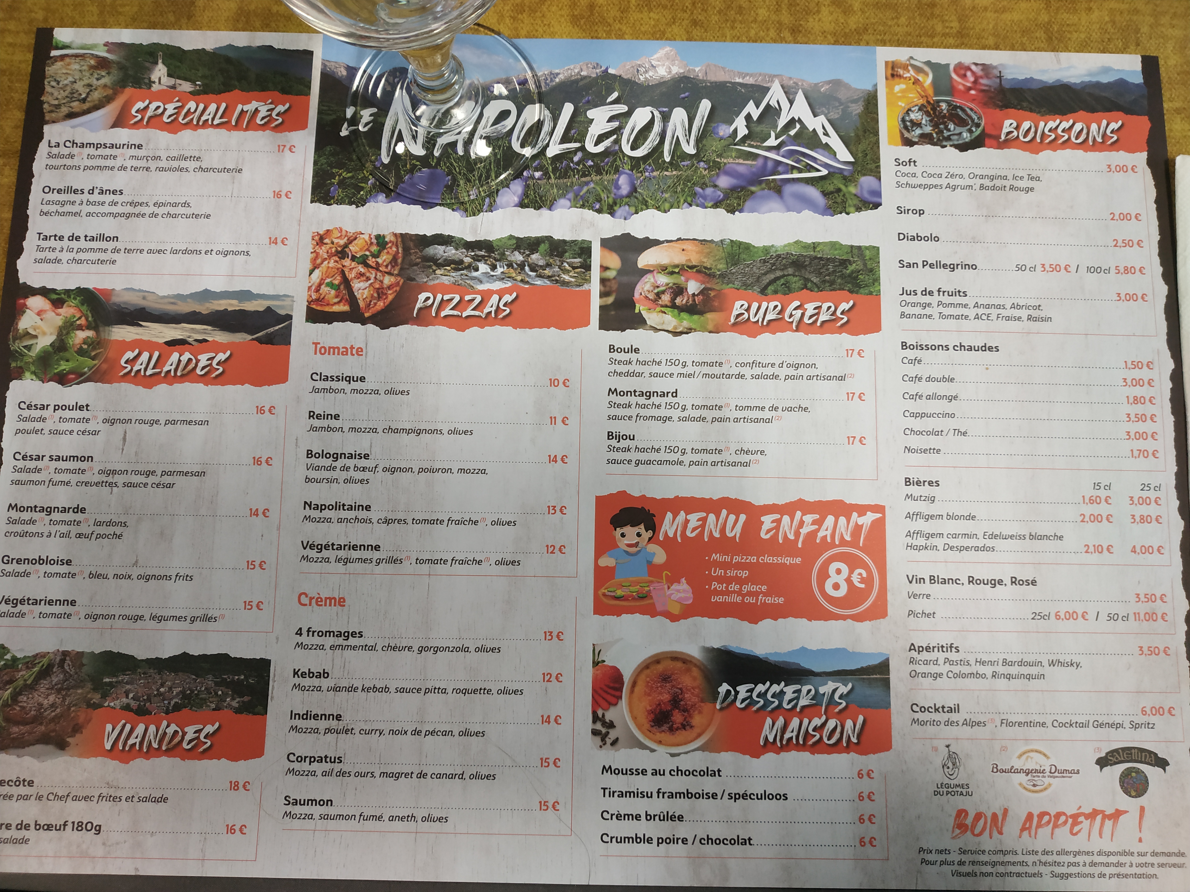 Nous sommes dimanche soir, dans le Valgodemar, et nous avons complétement oubliés que le dimanche, la plupart (pour ne pas dire tous) les restaurants sont fermés dans le secteur. Nous nous sommes donc rendu a Corps, en espérant trouver de quoi manger. A Corps, dimanche soir , seul le restaurant Napoléon est ouvert (bon point), donc nous avons naturellement opté pour ce restaurant. Sujet a une allergie alimentaire, nous avons demandé si un steak haché + frites était possible (pas sur la carte), la réponse a été positve. Nous avon donc mangé nos deux steack haché (correct) + frites (bonnes) + 2 orangina Arrive l'addition = 40.-€, nous n'avons bronché, car cela n'était pas sur la carte. Mais après réflexion, nous sommes très dubitatifs sur le prix quii nous a été facturé pour un simple steack haché (max 100g) + frites (en comparaison, leur steack tartare 180g est affiché à 20.-€). Le lendemain, ne souhaitant pas réitérer cette expérience, nous sommes aller manger a Gap (tant pis pour les kilomètres).