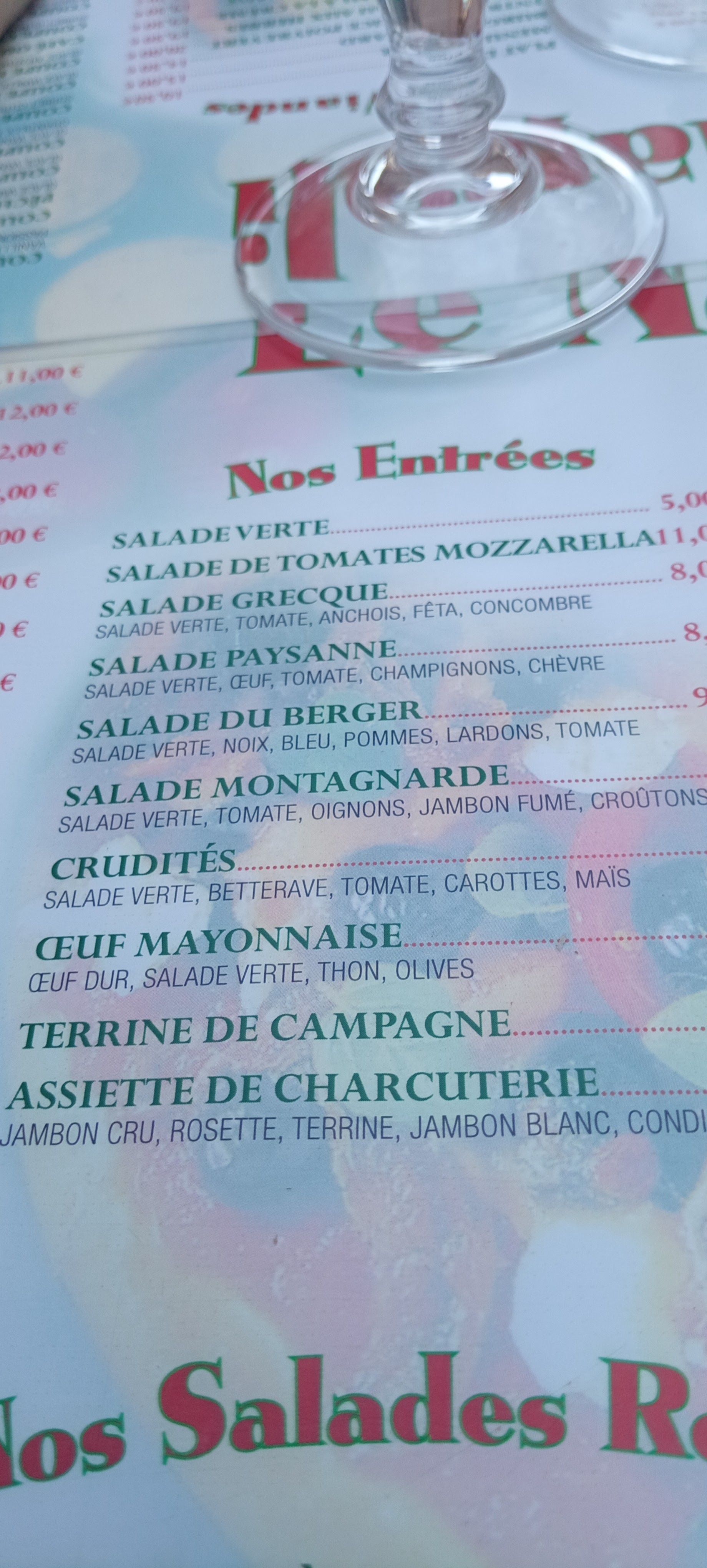 Je ne tiens pas rigueur de l'attente car c'était vraiment blindé de monde. Par contre payer 13 euros une salade chèvre chaud où il y a 3 pauvres bouts de tomates de la laitue et un minuscule bout de chèvre au milieu... Pas de pain de mie, pas de pain tout court. Pour le plat de mon compagnon la pièce du boucher on est sur du caoutchouc immangeable, des frites et ratatouille surgelés. Les restaurants qui abusent des touristes ça commence à bien faire.