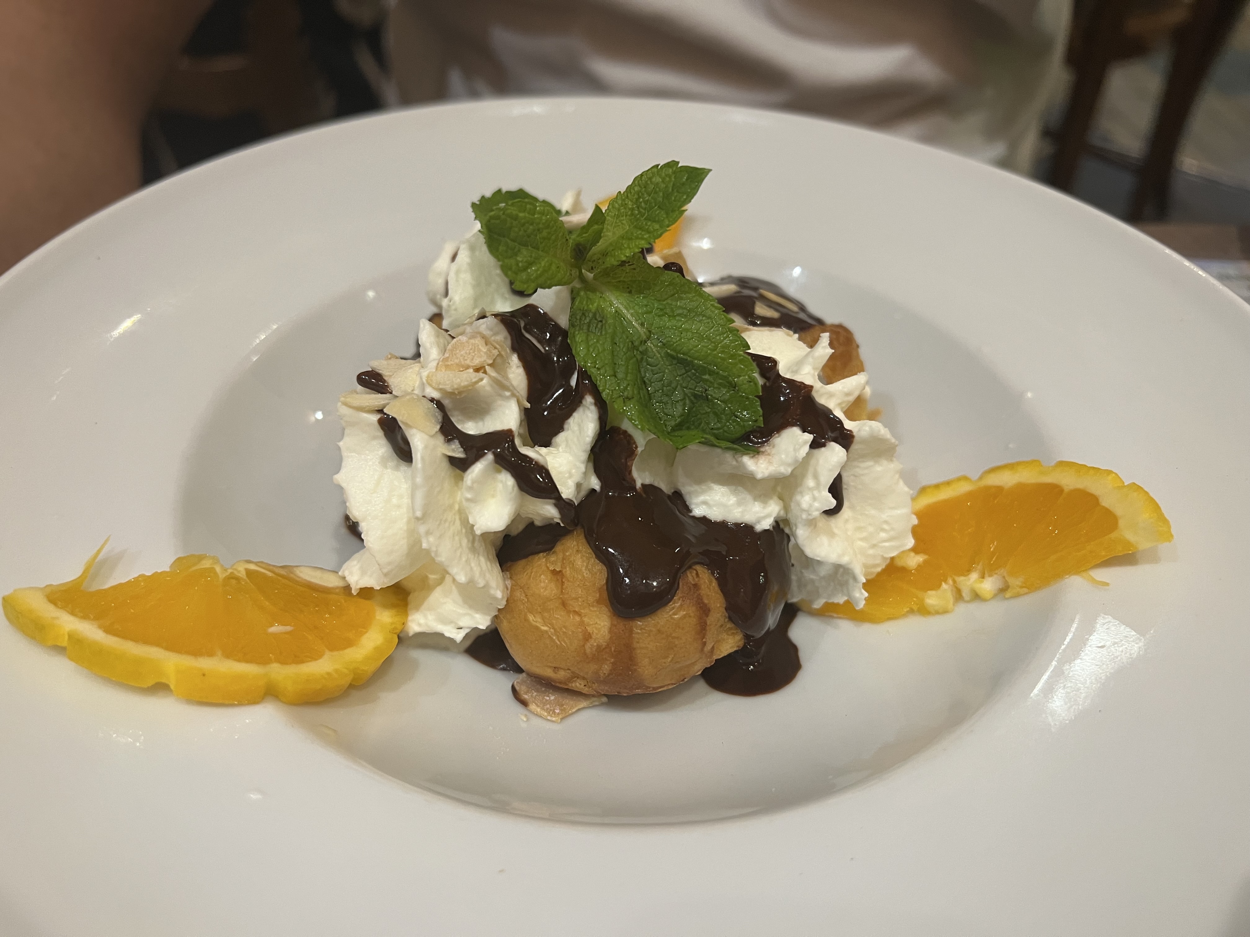 Ambiance cool service impeccable repas extra et le dessert... prenez les profiteroles c'est très très bon