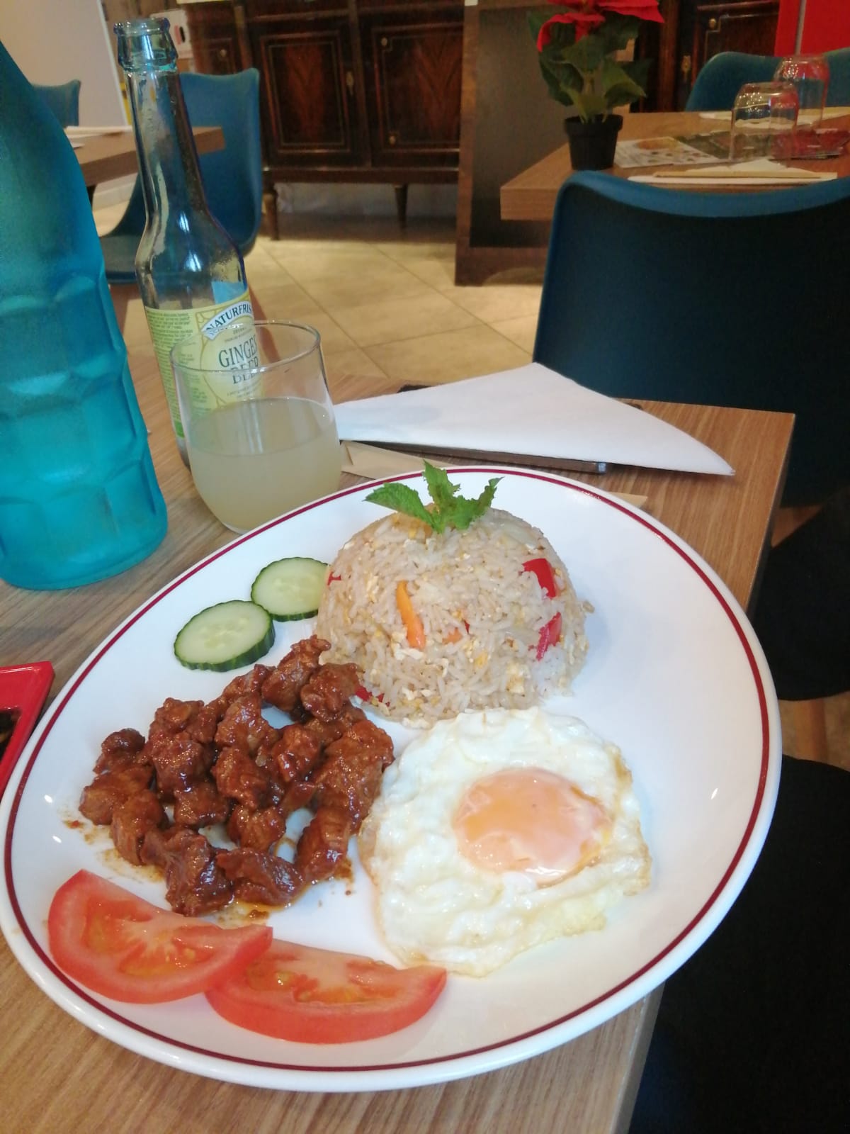 J'y suis allée avec mon fils et son meilleur ami, belle accueil et très bon... service top ambiance calme et tranquille...on y retournera sans problème..leur lok lak boeuf parfait !