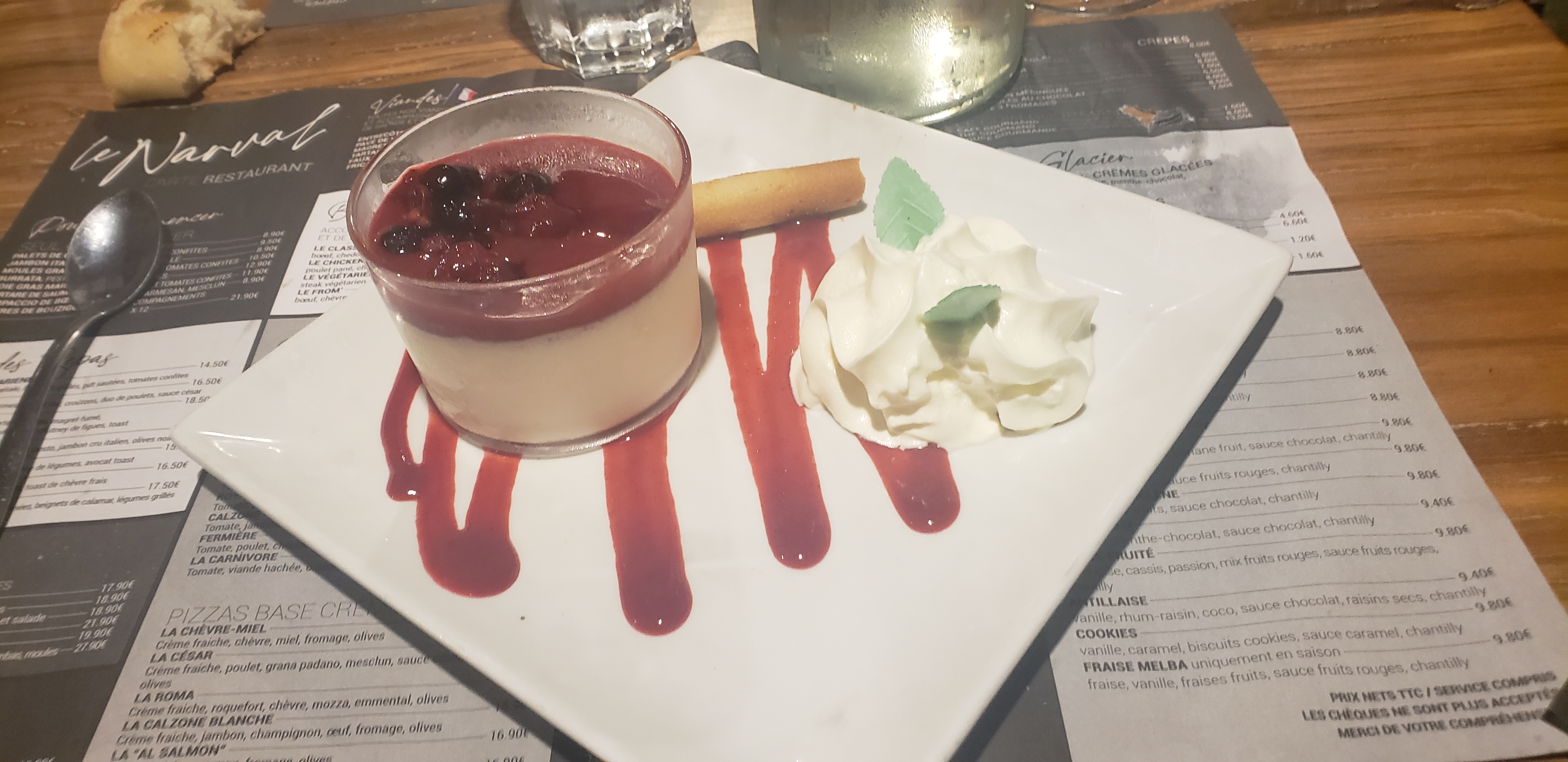 Les moules gratinées sont insipides et 4 dans l'assiette ce n'est pas beaucoup, idem pour les couteaux il en faudrait 2 de plus. Les seiches ont été appréciées, bien cuites et pas caoutchouteuses, le saumon bof. Quand au dessert glaces ou panna cotta. Rien de particulier pour ce restaurant