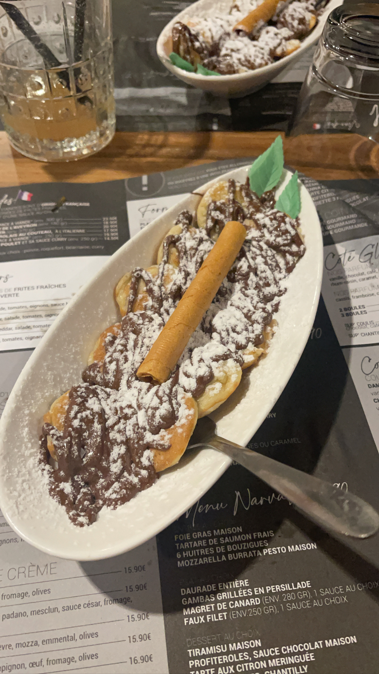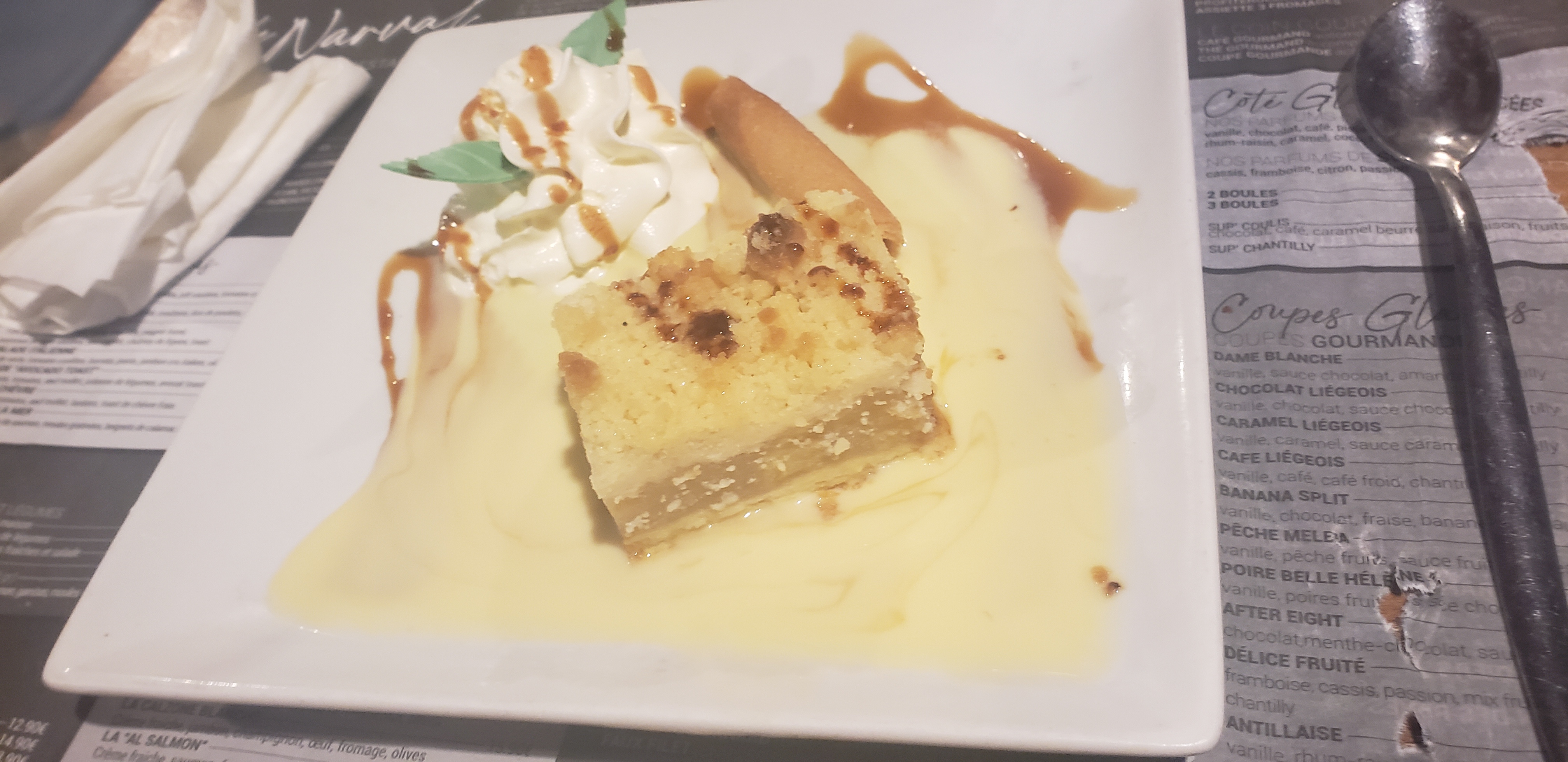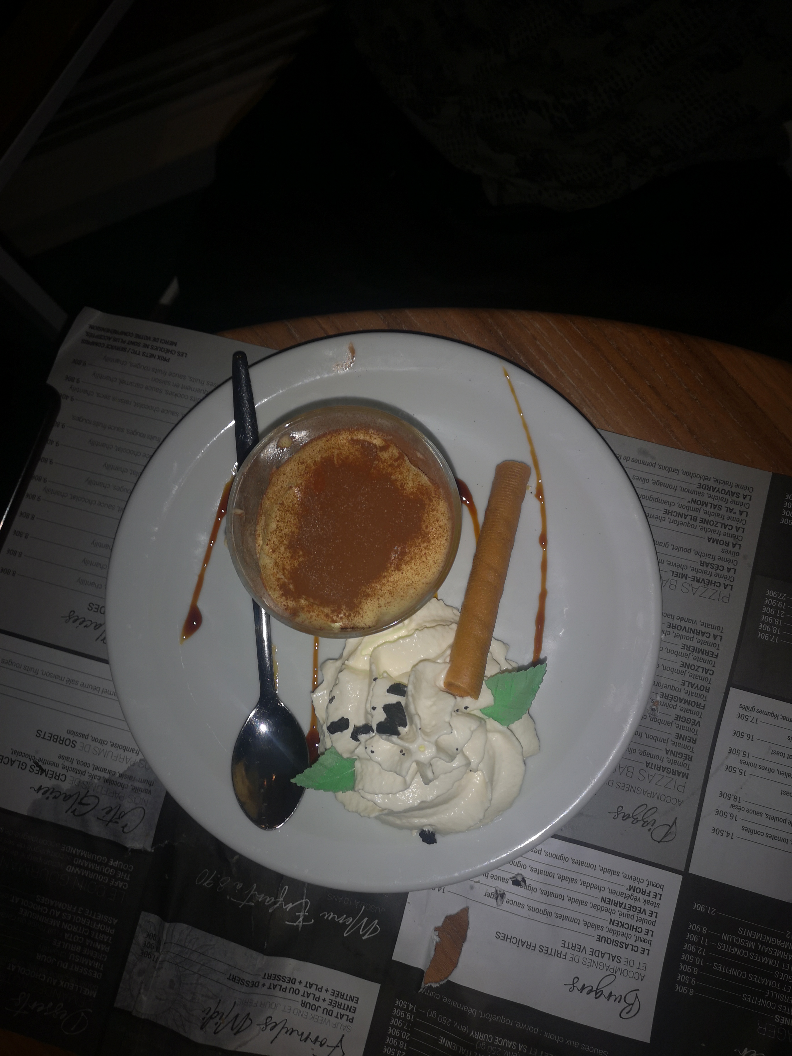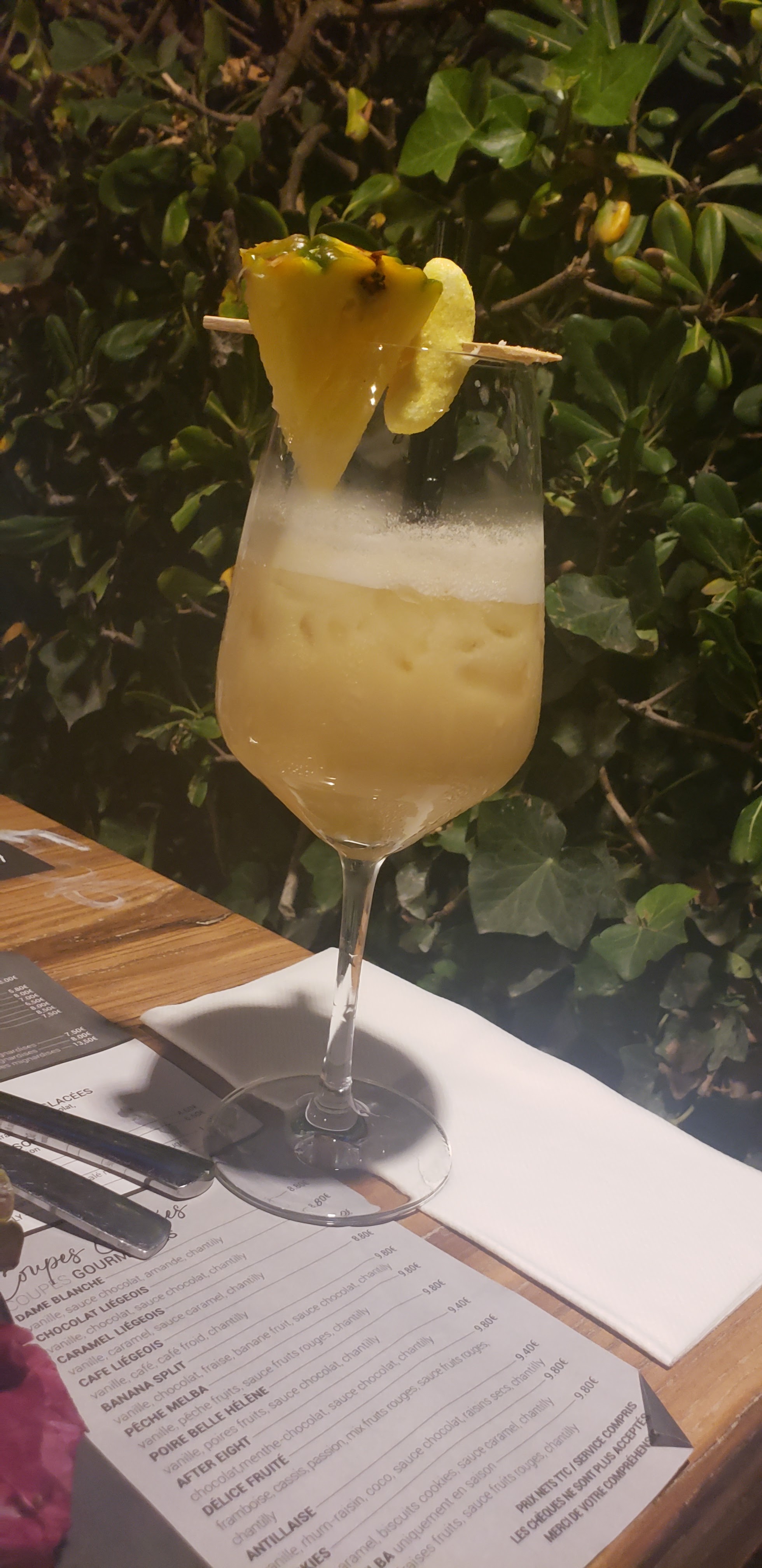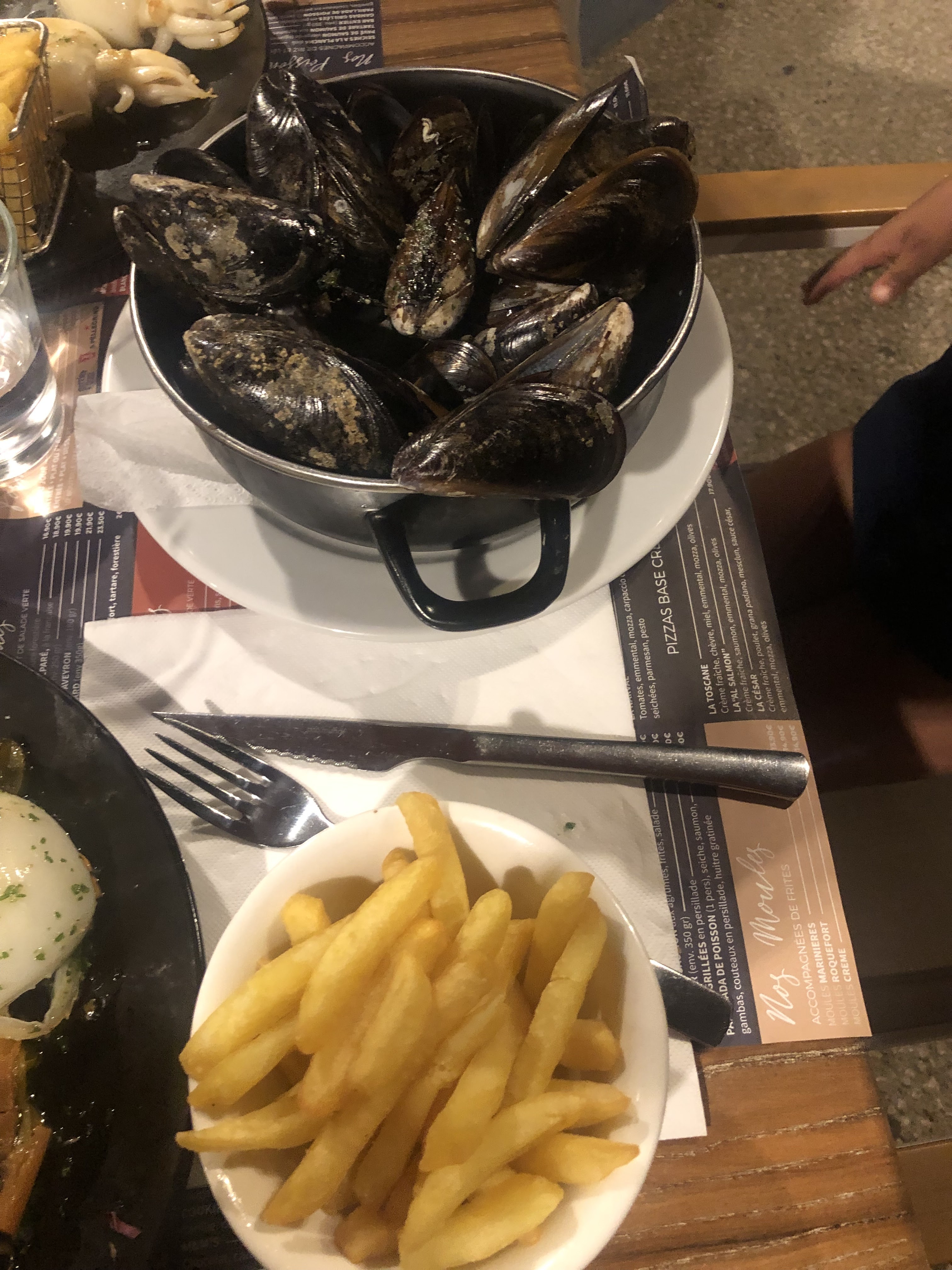 Repas agréable, moules marinières excellentes avec du persil. Léger problème tout de même car les jus au fond des moules était remplis d’huiles et donc je n’ai pas pu le boire. Placement des tables très proches, on mange avec les personnes voisine. Cocktail charger on finis plus bourré que calé