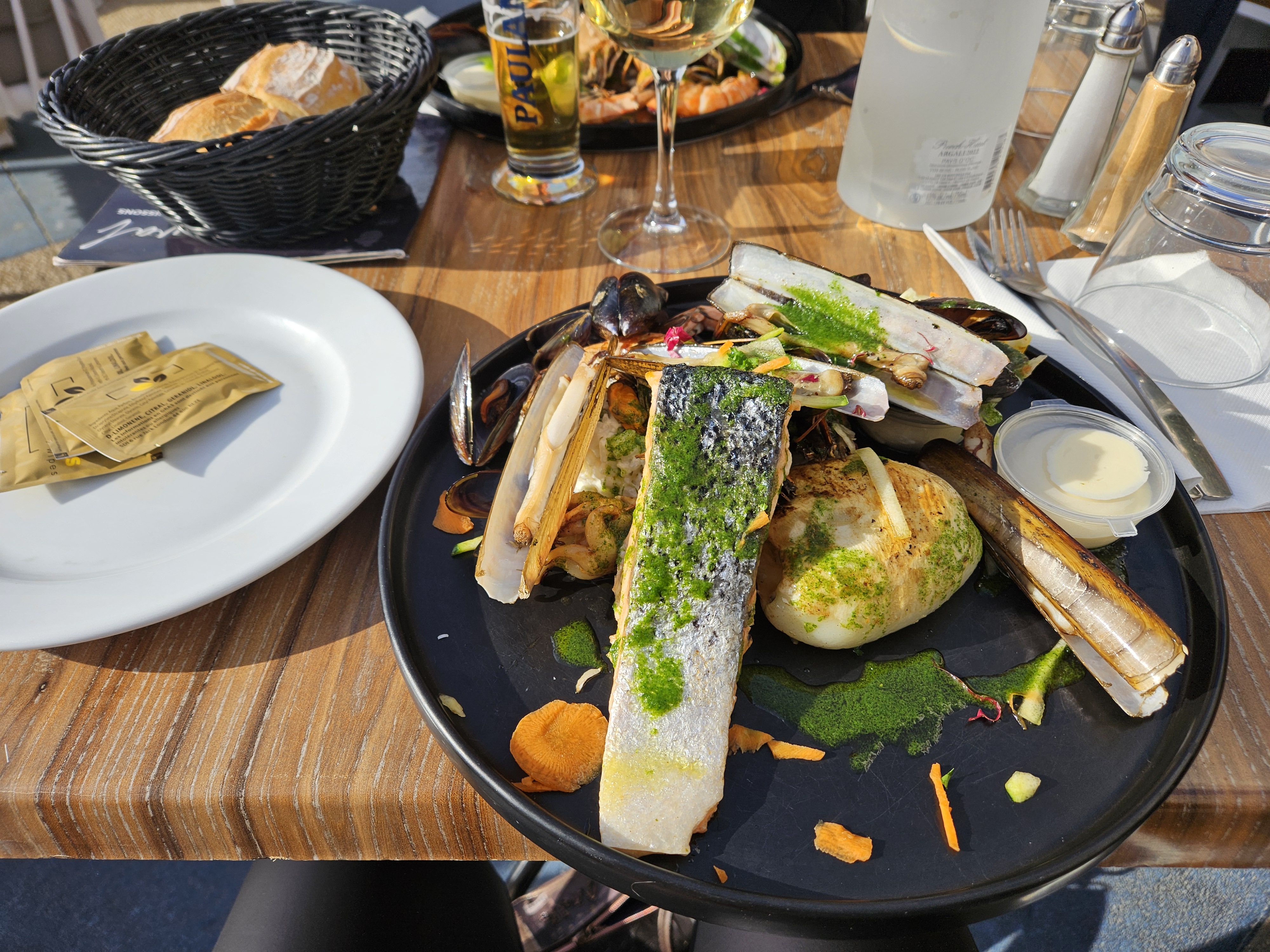 Restaurant touristique Moule gratiné froide Poisson trop cuit et tiède Addition gratiné, vous payez la vue et la terrasse, mais pas ce que vous avez dans l assiette