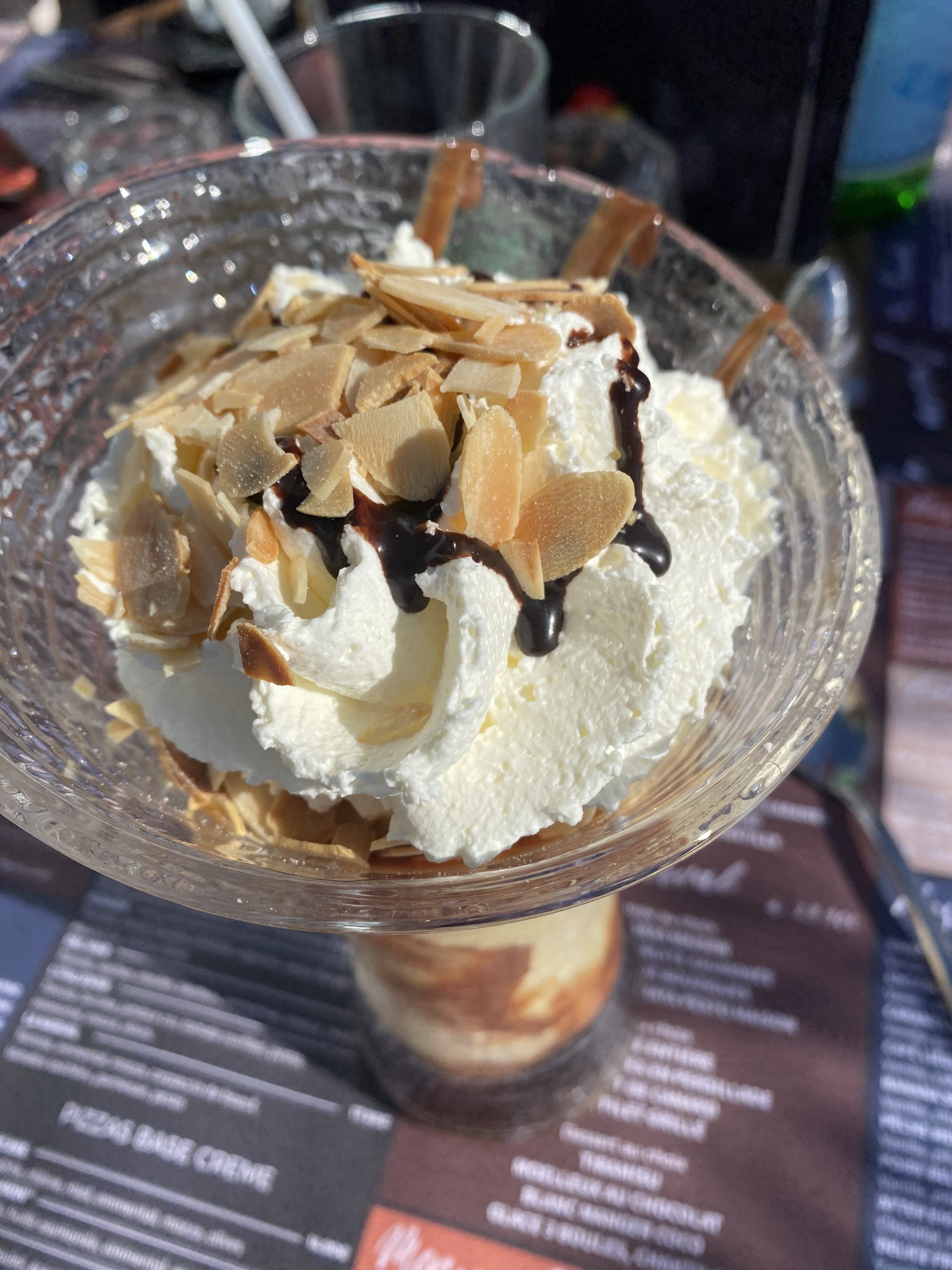 On s’est assis pour prendre une glace et une boisson avec mon mari , premier chose, les parasols non mis sur les tables , résultat les muettes qui nous ont * dessus, mon café frappé c’est du café dilué à l’eau … et en plus la serveuse tellement pressé de nous faire payer elle renversé la boisson sur mon mari et se barre sans nous tendre un mouchoir