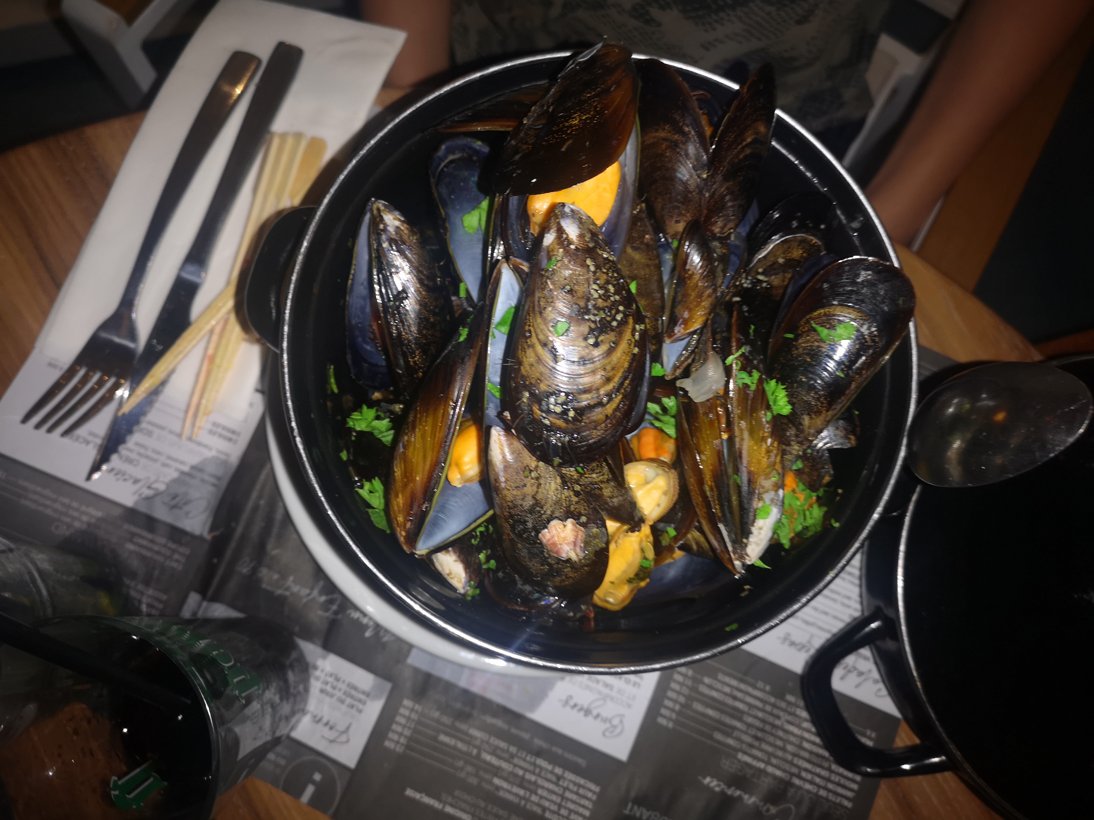 Une envie de moule. N'hésitez pas à y aller. Très satisfait des moules au roquefort. Et vu que je suis un gros mangeur je plaisantais avec notre serveur comme quoi je restait un peu sur ma faim et il m'a proposé une autre casserole. Je ne m'attendais pas à la voir arriver. Je me suis donc régalé avec une deuxième fournée de moules au chorizo cette fois-ci qui était également excellente.
